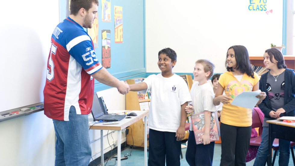 Les élèves des écoles Général-Vanier et Pierre de Coubertin, à Saint-Léonard, ont eu la chance de rencontrer des joueurs des Alouettes de Montréal, les 11 et 16 février derniers. Dans