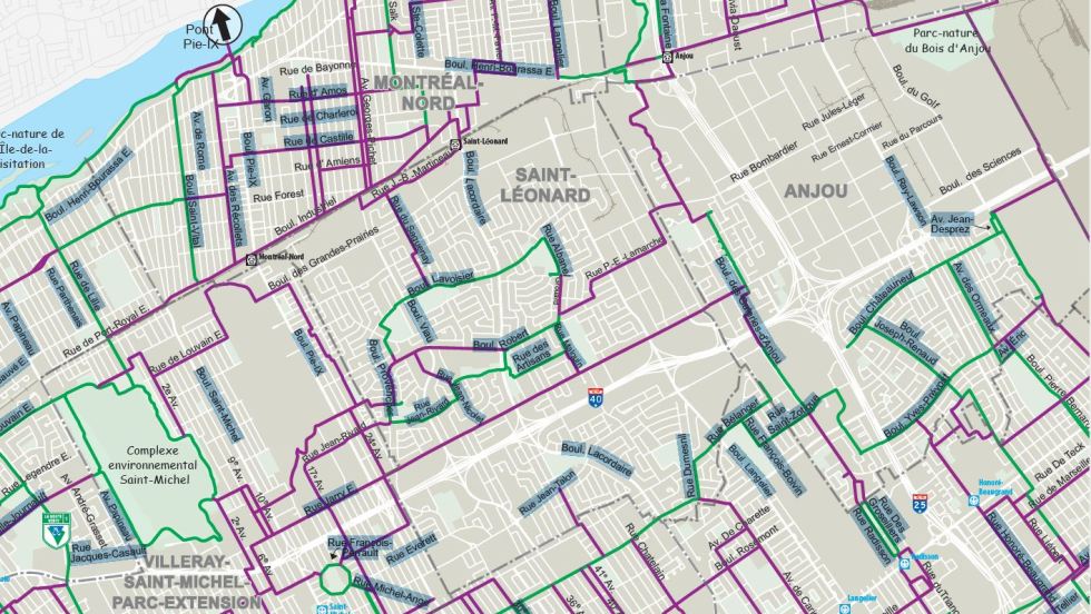 Le nouveau plan d’aménagement de pistes cyclables présenté par la Ville-centre permettrait de bonifier le réseau cyclable de l’arrondissement de Saint-Léonard d’une dizaine de voies. Le plan des pistes cyclables