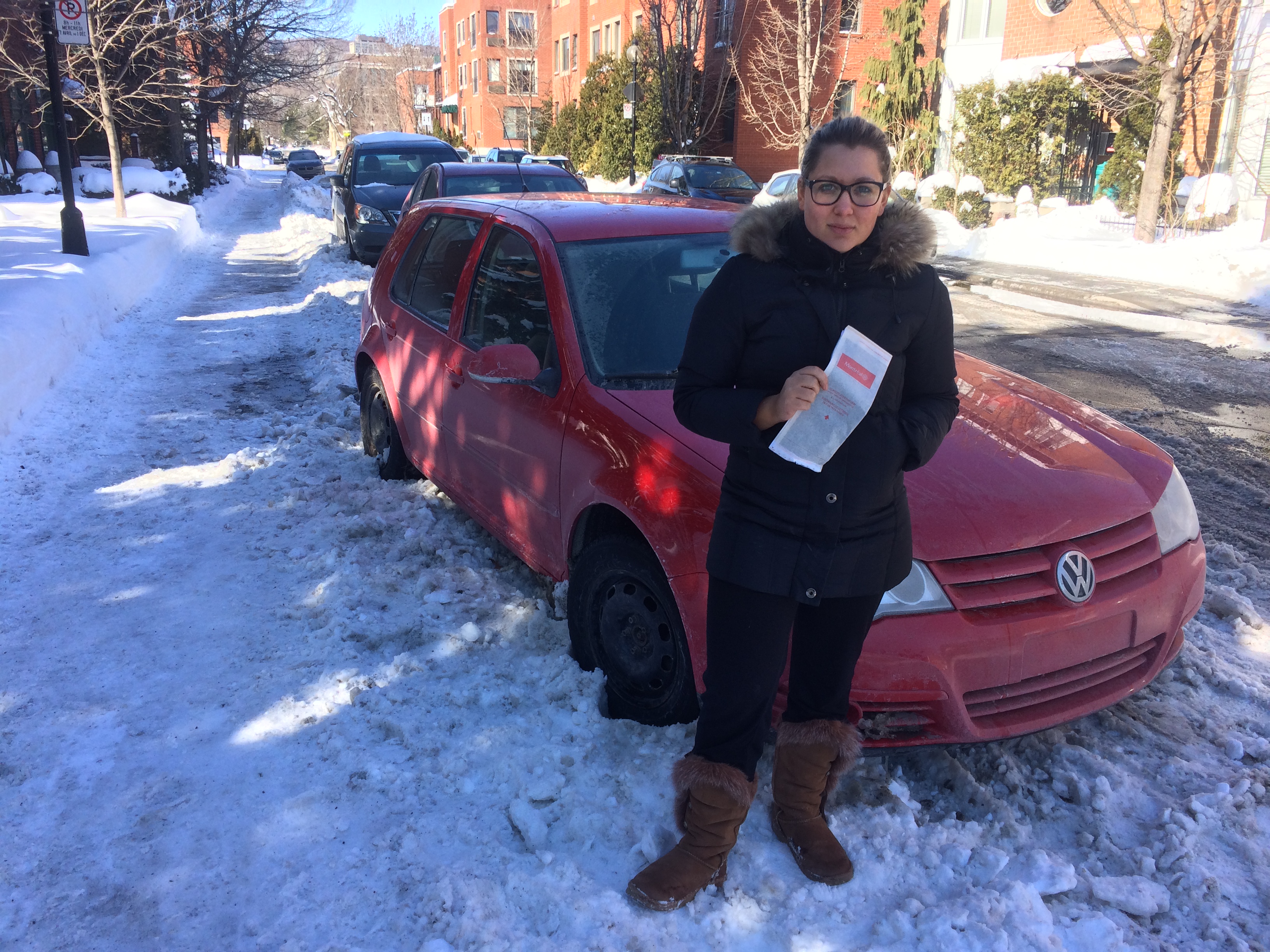 Amanda Labadie, une résidente de la Petite-Bourgogne de l’arrondissement du Sud-Ouest, est fâchée d’avoir écopé d’une contravention de 118$ qu’elle juge injustifiée. Son véhicule a été remorqué tard dans la nuit de jeudi en prévision des opérations de déneigement qui n’ont finalement jamais eu lieu sur la rue Sainte-Cunégonde.
