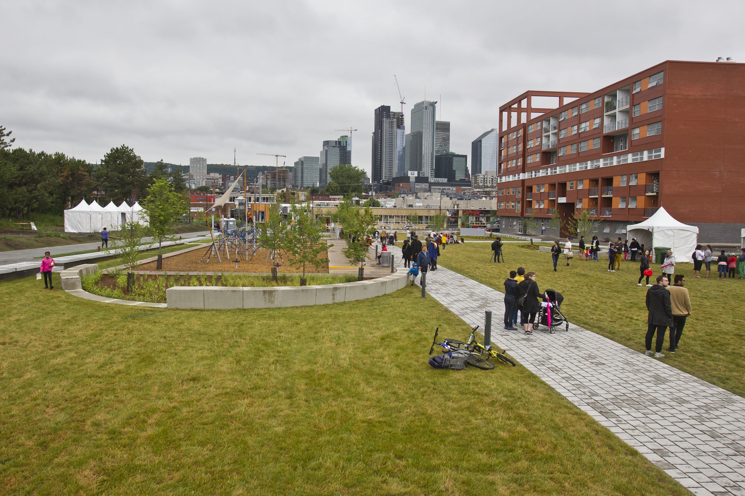 C’est la firme Civiliti qui était responsable de la conception de l’espace situé le long du canal de Lachine, près de la rue Richmond. Inauguré en mai, il occupe une aire de 7600 mètres carrés sur ce qui était un bassin de déchargement de bateaux dans le port industriel du canal jusque dans les années 1950.