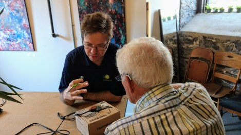 Plus d’une vingtaine de personnes se sont rendues au café Le 5e, situé sur la rue de la Montagne, pour bénéficier de soutien technique gratuit pour leurs ordinateurs, tablettes et téléphones défectueux.