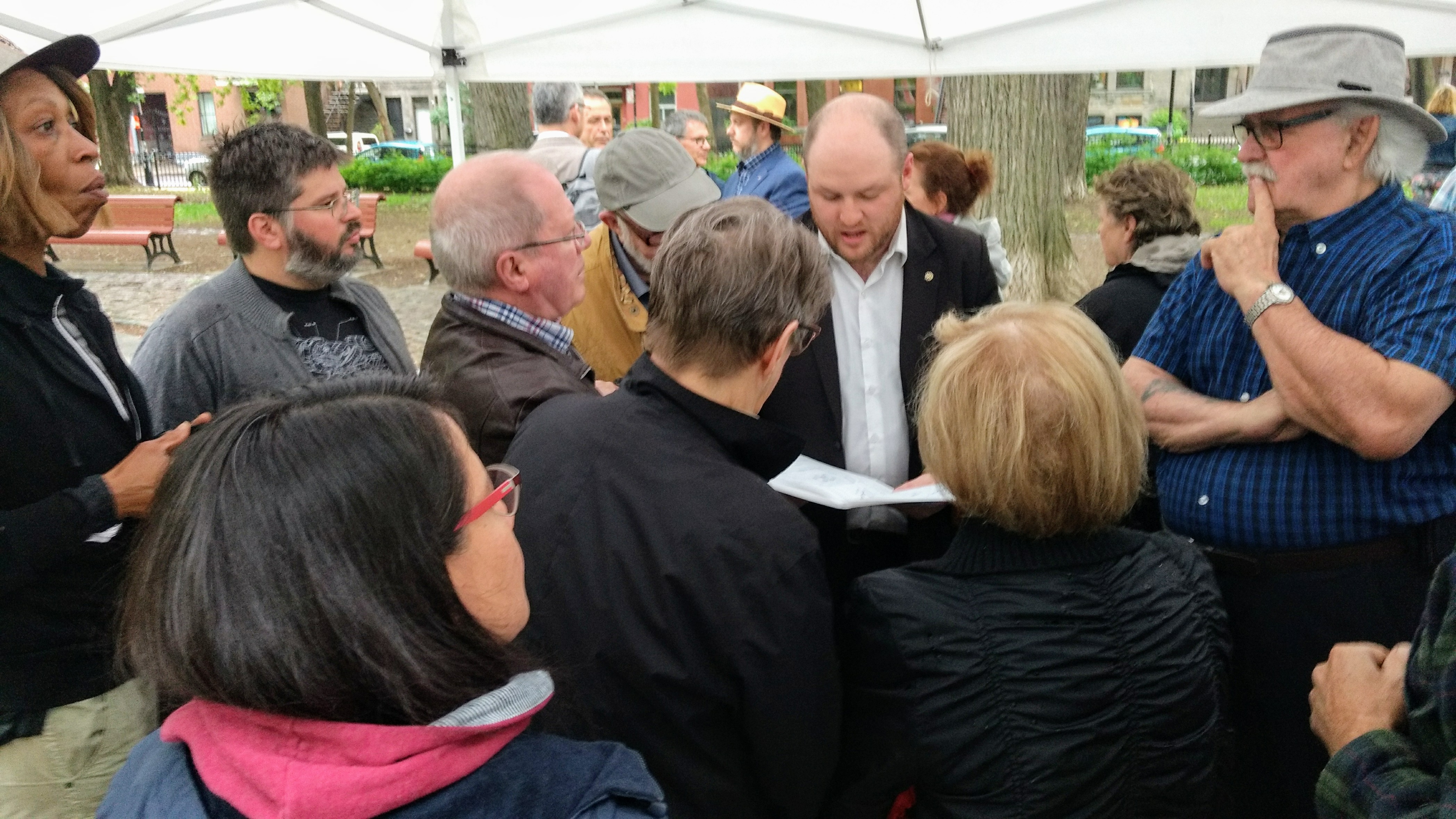 D’autres participants opposés au projet, comme Pierre Sylvain, avançaient que l’implantation d’une clôture autour du monument Jacques Cartier viendrait changer l’allure du parc Saint-Henri.