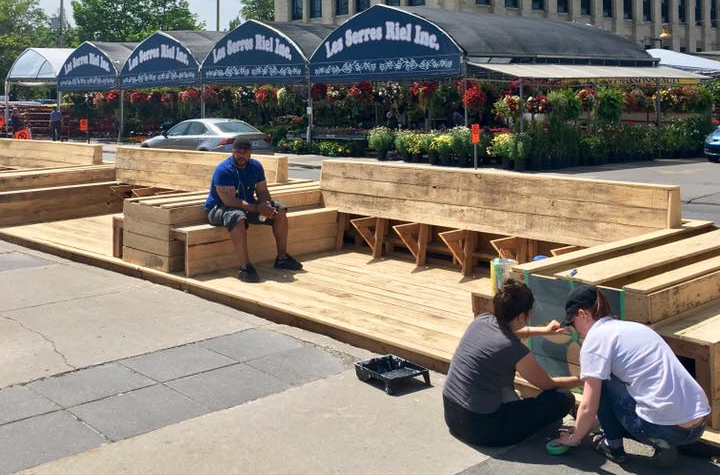 Les abords du marché Atwater seront plus conviviaux, cet été, grâce à la Place du Marché, un espace de socialisation éphémère situé au coin des rues Saint-Ambroise et Atwater.