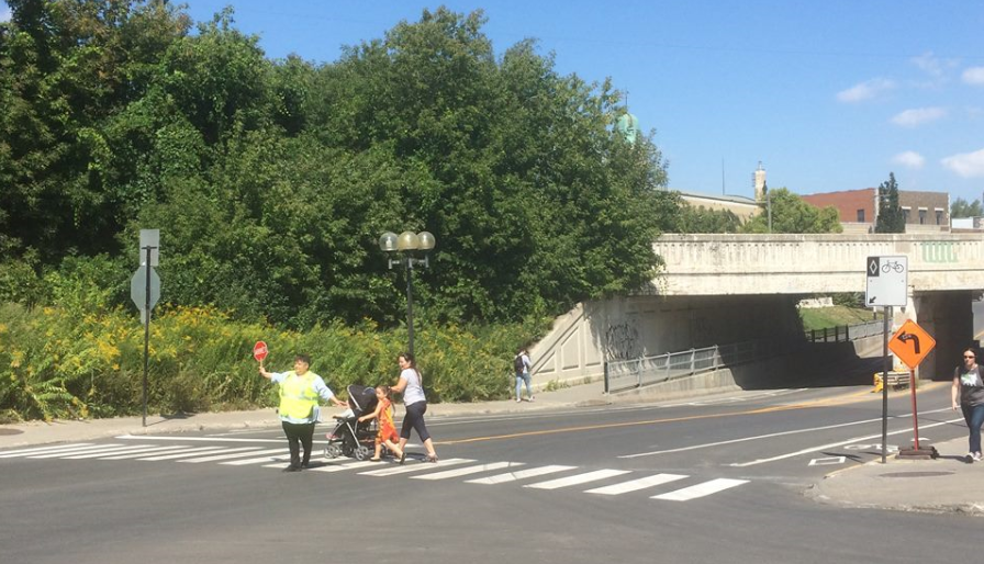 L’intersection des rues Notre-Dame Ouest et Saint-Ferdinand, dans le quartier Saint-Henri, est dorénavant dotée de deux nouveaux arrêts, d’une traverse piétonnière et de la présence d’une brigadière matin et soir afin de maximiser la sécurité des écoliers du coin.