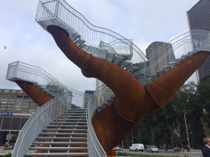 «Ça répond à la volonté de mettre les voitures de côté et de redonner aux piétons une place centrale. Quand on grimpe tout en haut, on a l’impression que la ville nous appartient, ça nous donne un sentiment de force», raconte Michel de Broin, gagnant du concours national d’art public pour le legs Bonaventure.