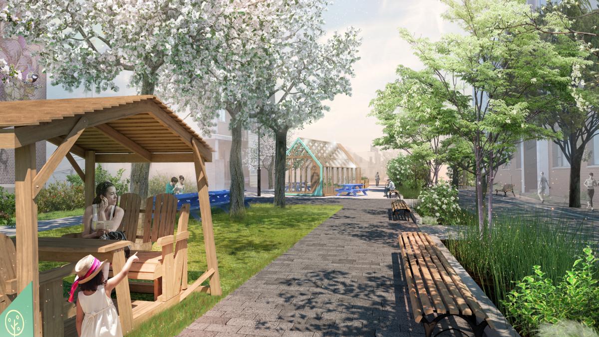 «Une stratégie végétale se déploie durant toute l’année avec une fonctionnalité modulable des éléments mobiliers», ont mentionné les présentateurs de la proposition lauréate. La place publique sera rythmée par le cycle des saisons, tout comme son aménagement paysager.
