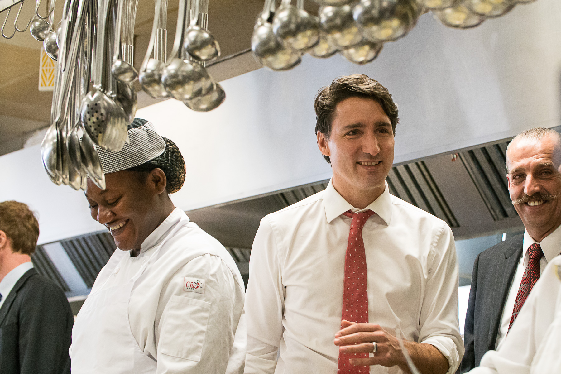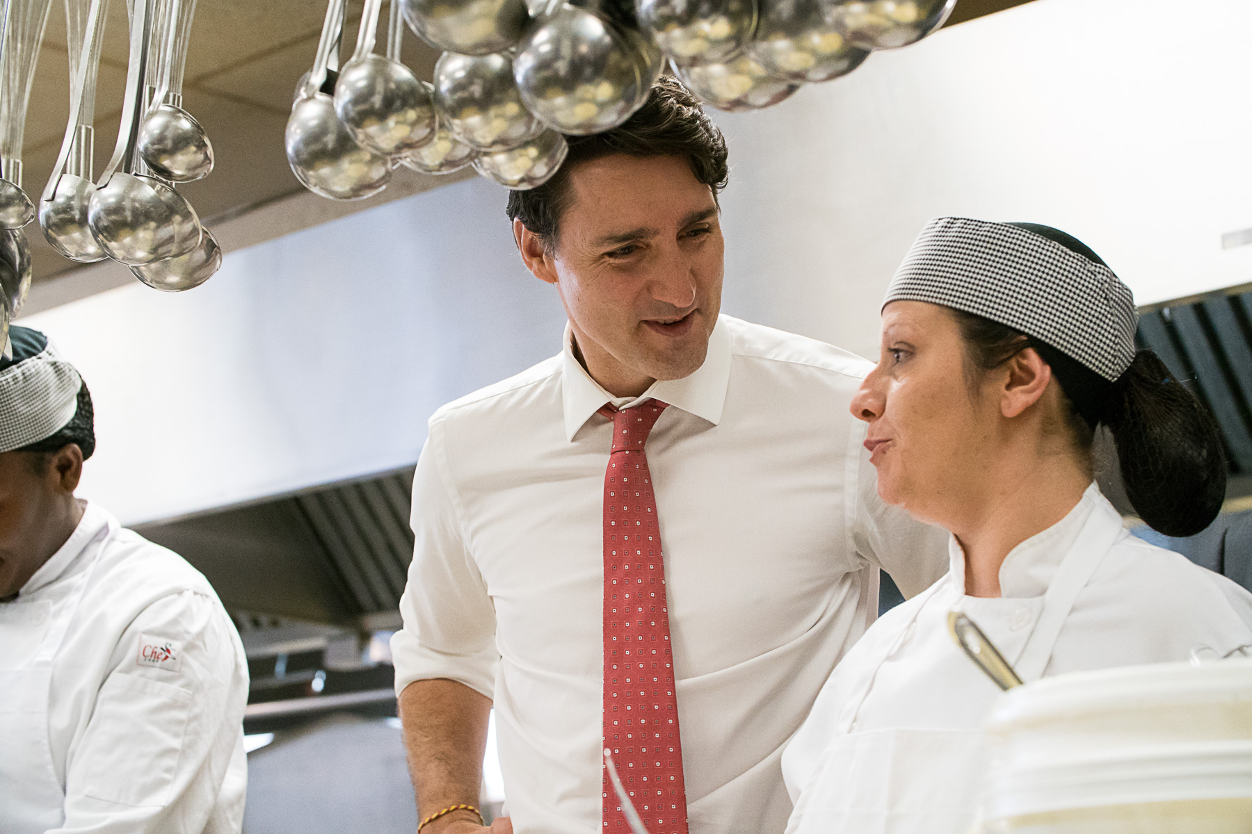 Mme Lavigne et sa collègue Valérie Laroche ont reçu la visite de Justin Trudeau alors qu’elles étaient en train de préparer des boîtes à lunch pour le service traiteur. «J’étais un peu stressée parce que ce n’est pas tous les jours qu’on rencontre le premier ministre», souligne Mme Laroche, qui a tout de même continué à assembler ses sandwichs sans trop se laisser distraire.