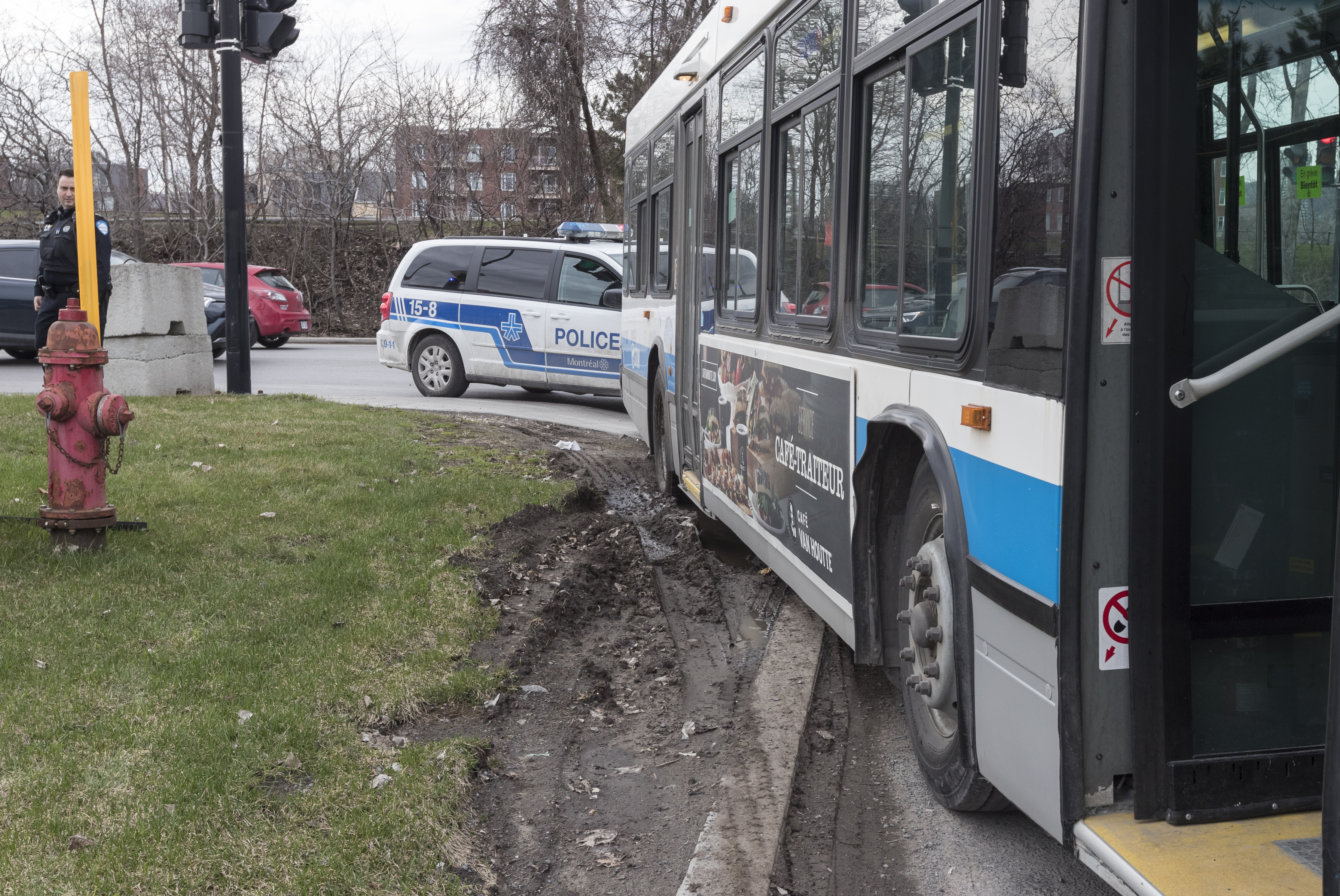 «Les chauffeurs n’ont pas le choix d’embarquer sur le terrain pour passer. Il y a donc un immense trou qui s’est formé. Les camions réussissent à se décoincer, mais les autobus n’ont pas toujours la puissance de le faire», ajoute le directeur.