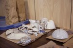 Des moules à chapeaux, de la vaisselle de porcelaine, une pipe, une clochette, des os de poulet, une semelle de chaussure d’enfants et des bouteilles en verre faisaient notamment partie de la série d’artefacts étalés sur des tables à l’intérieur de la roulotte.