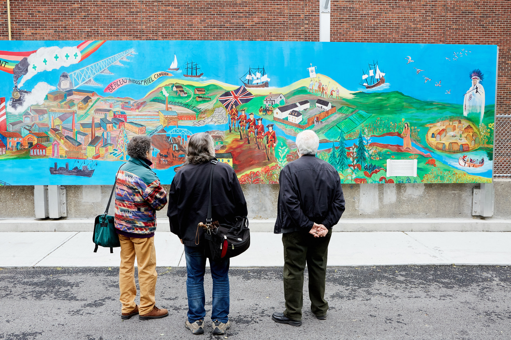 Depuis l’époque où le territoire était occupé par les Premières Nations jusqu’au quartier que l’on connaît aujourd’hui, formé de 15 000 résidents et de nombreux organismes communautaires, la fresque représente l’évolution de Pointe-Saint-Charles.