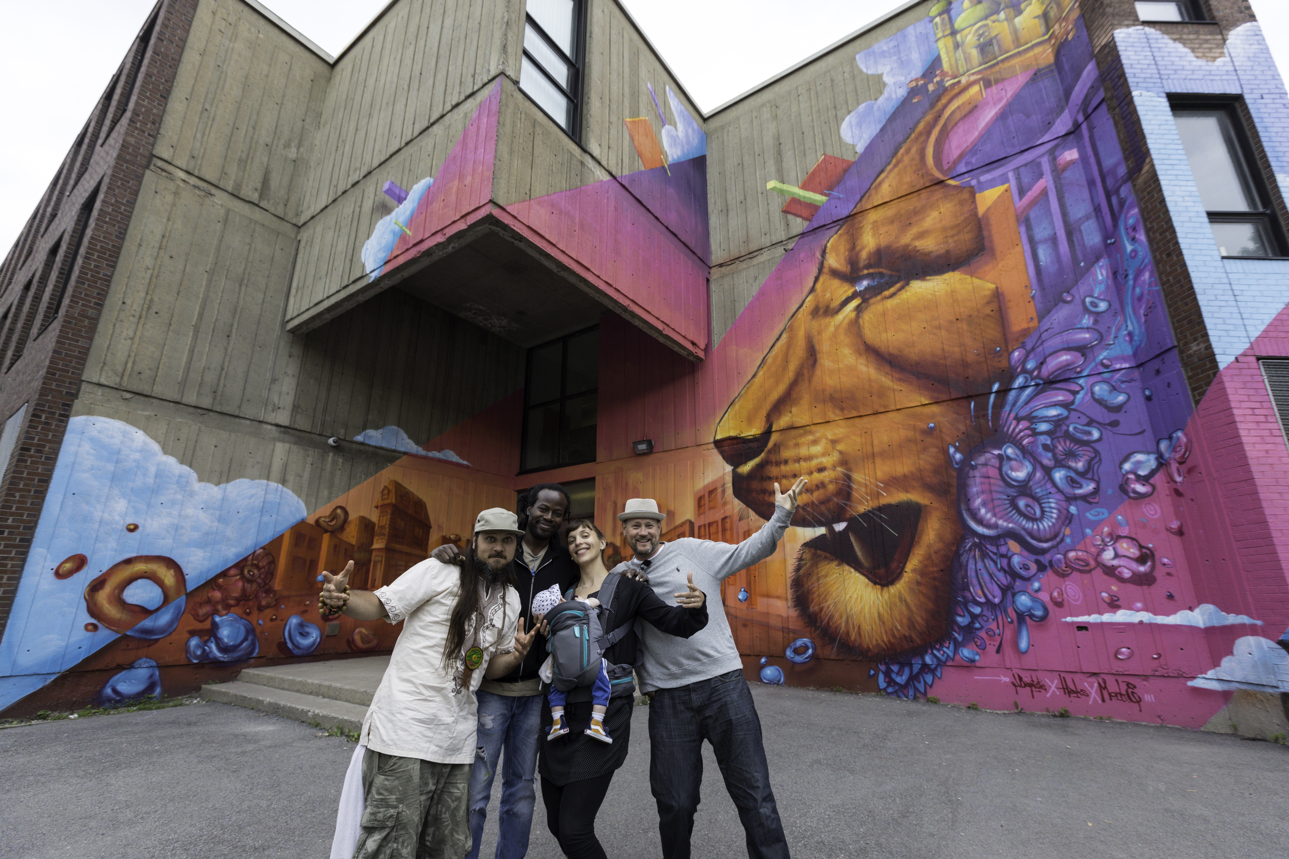 Les trois artistes collaboraient ensemble pour une première fois. C’est Melissa Proietti, la directrice de la Convention internationale de la culture urbaine (CICU) qui collabore avec l’école dans ses divers projets artistiques, qui a eu l’idée de les unir pour la confection de cette murale.