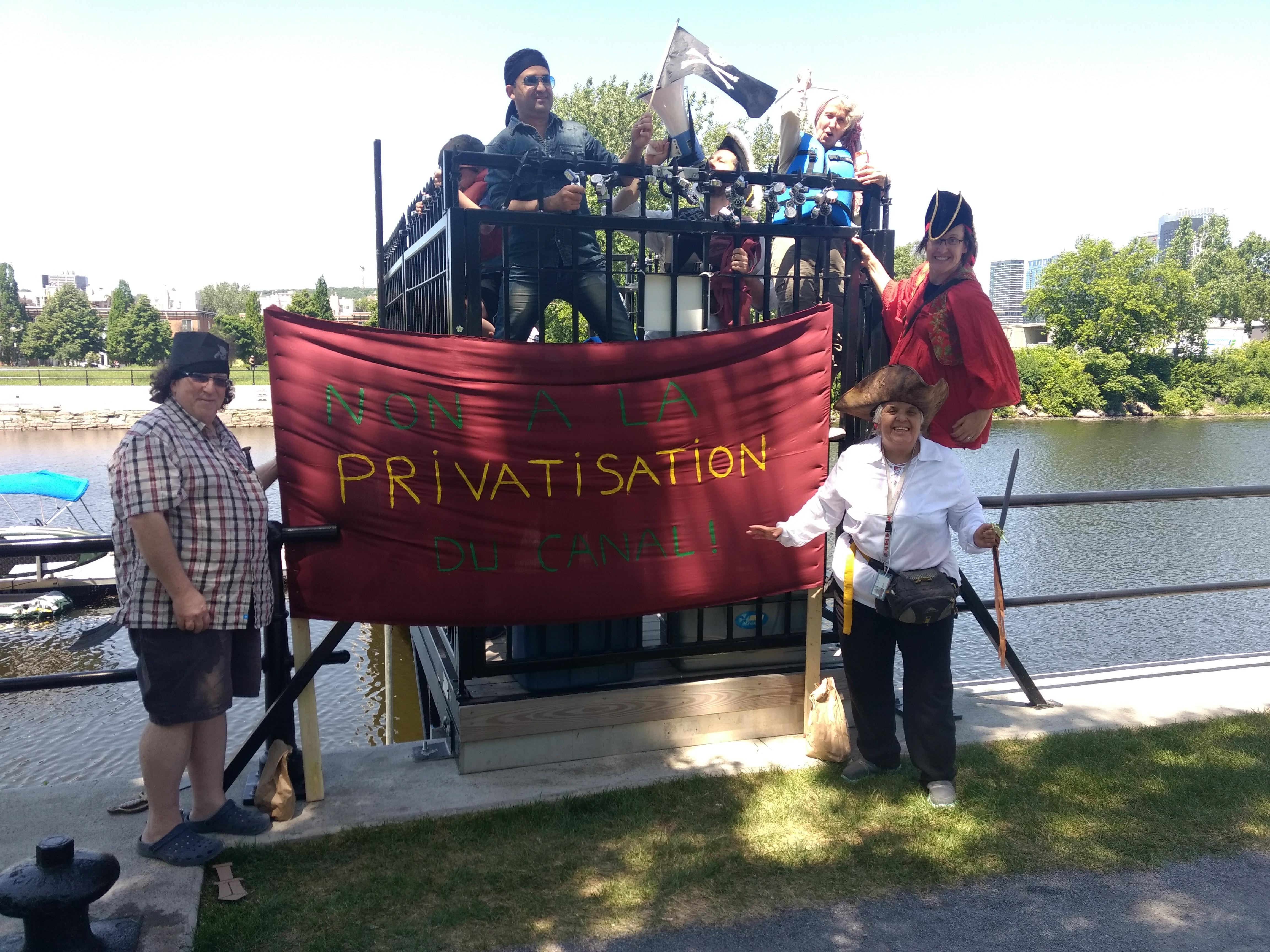 Une quarantaine de résidents de Pointe-Saint-Charles et des membres de la table de concertation Action-Gardien, déguisés en pirates, ont pris d’assaut le canal de Lachine, samedi. À bord de leurs rabaskas (canots en écorce) et de leurs pédalos, la troupe s’est dirigée vers un quai réservé aux occupants d’un immeuble à condos afin de dénoncer la privatisation des berges.