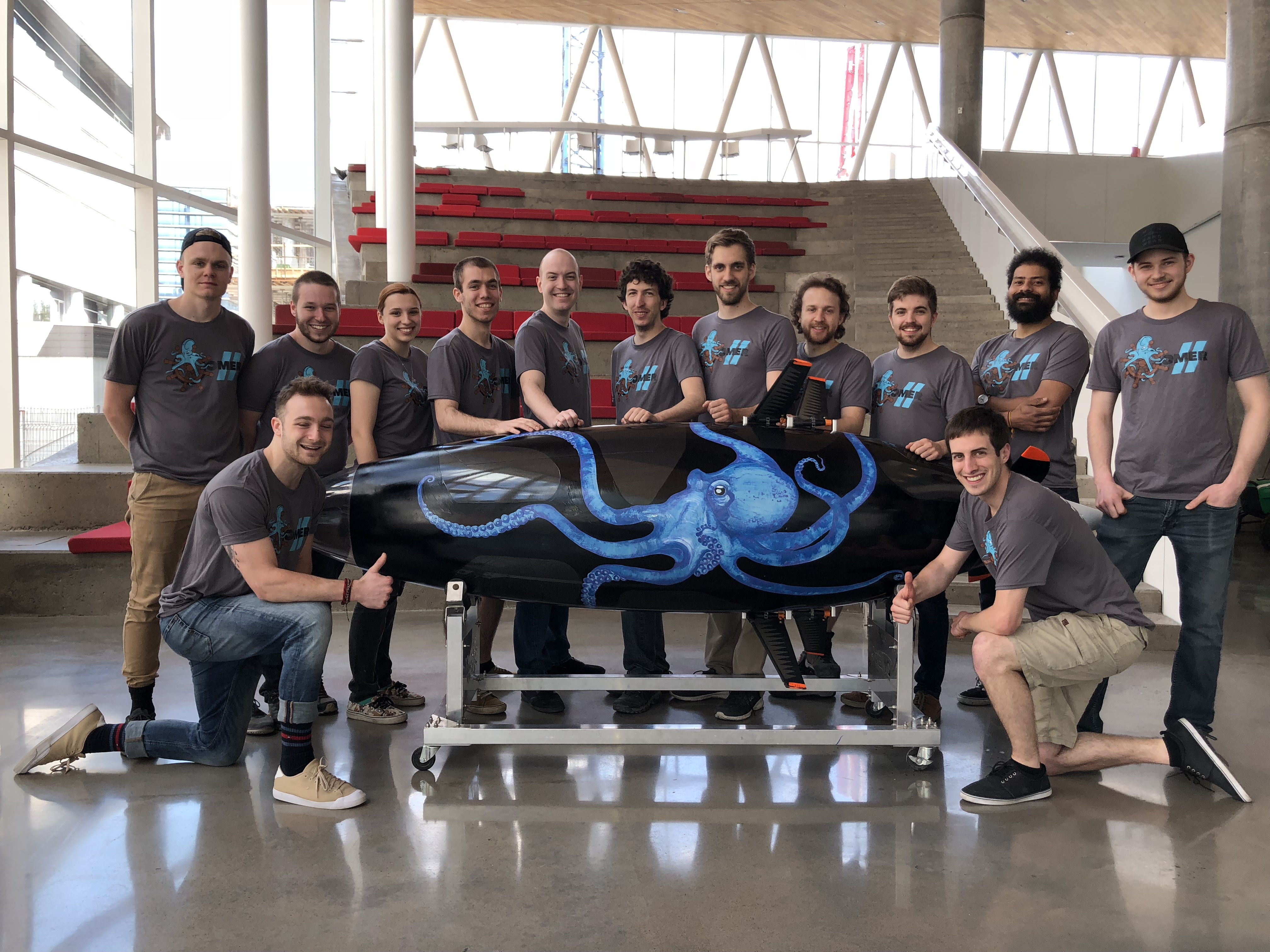 Outre remporter le record du monde, l’équipe d’OMER 11 souhaitait relever un défi supplémentaire, celui de fabriquer un sous-marin hybride qui leur permettrait de participer aux épreuves de deux catégories: monoplace avec et sans hélice.