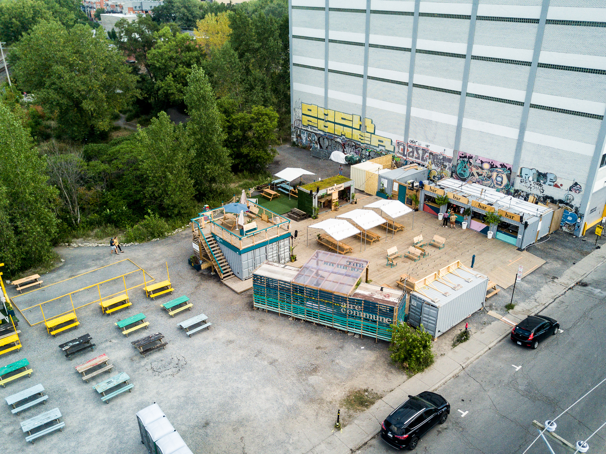 L’objectif de cet espace éphémère adapté au travail en plein air, prenant place sur l’avenue de Gaspé, était de créer des connexions entre les entrepreneurs, travailleurs et étudiants évoluant dans le même quartier par le biais d’événements corporatifs, mais également d’offrir un lieu de rassemblement pour les résidents riverains.