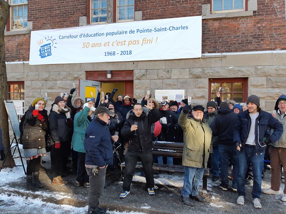 C’est avec un sentiment de fierté, mais teinté de crainte, que les membres du Carrefour d’éducation populaire de Pointe-Saint-Charles ont célébré leur 50e anniversaire. Un panneau commémoratif, maintenant accroché sur la façade de la bâtisse de la rue du Centre, met de l’avant le passé, le présent, mais surtout le futur précaire de l’organisme communautaire qui offre des ateliers éducatifs visant l’amélioration du système social.