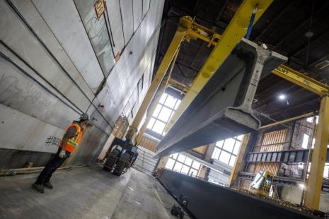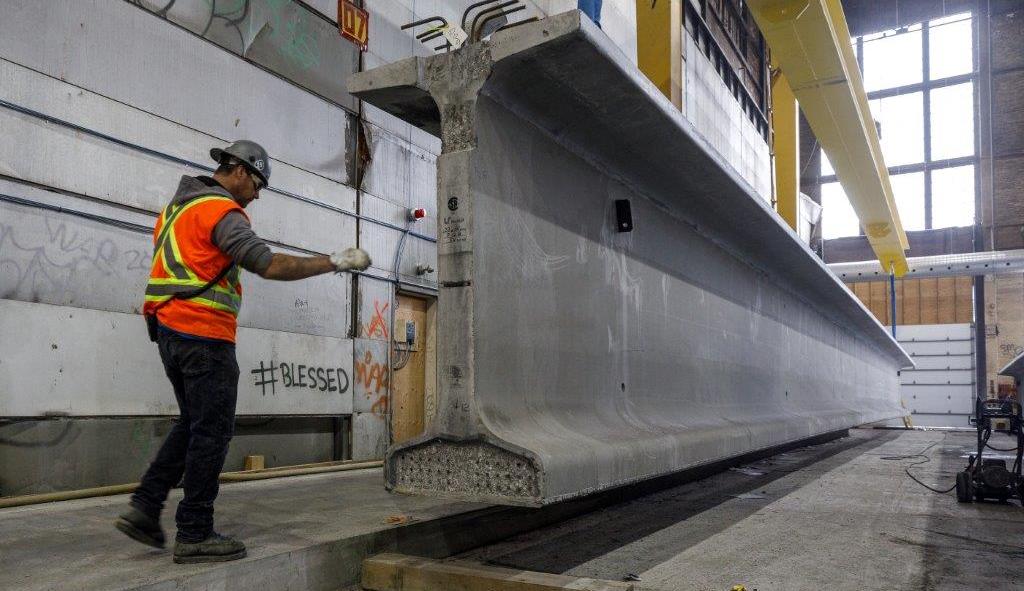 Des poutres du REM fabriquées à Pointe-Saint-Charles