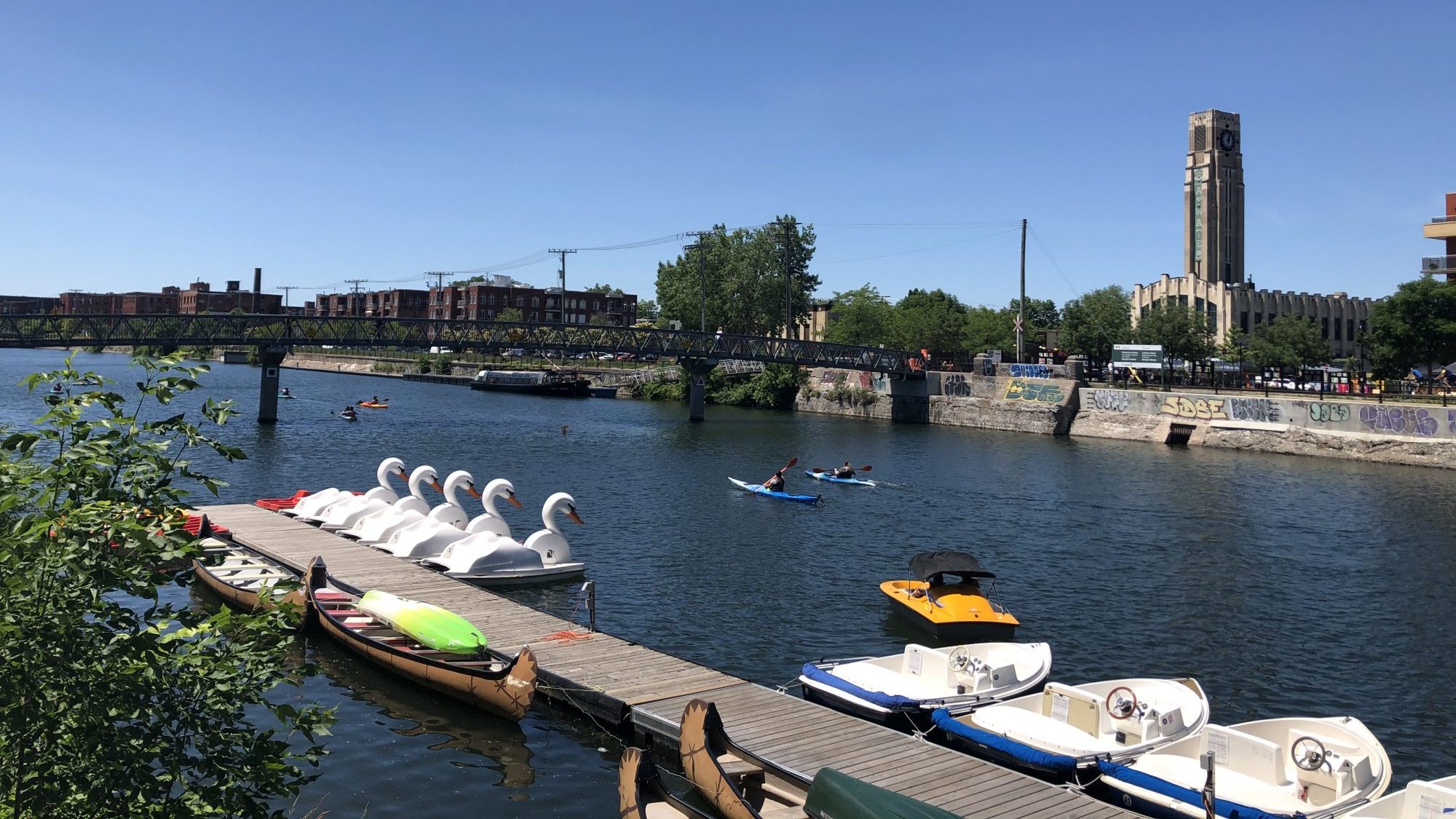 Cet été, les Montréalais peuvent naviguer sur l’eau à quelques pas de chez eux. Une entreprise du Sud-Ouest, située entre les écluses Côte-Saint-Paul et Saint-Gabriel, offre la location de pédalos et de kayak sur le canal de Lachine.