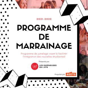 Ce programme a pour objectif de créer une véritable communauté entre les étudiantes et bâtir tout un réseau pour faciliter l’intégration des élèves nouvellement arrivées à l’ÉTS. L’étudiante est libre d’établir un jumelage avec la marraine de son choix, parmi 12 ingénieuses disponibles et volontaires, dont les profils sont à découvrir sur le site Internet de l’ÉTS.