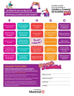 L’Arrondissement du Sud-Ouest lance le concours Je profite de ma relâche en famille dans le Sud-Ouest, à l’occasion de la semaine de relâche scolaire qui se tiendra du lundi 7 mars au vendredi 11 mars 2022.