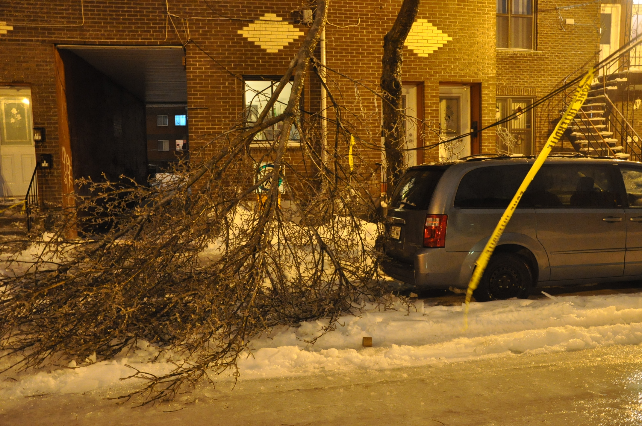 Montréal a eu droit à un cocktail de précipitations en fin de semaine avec 20 cm de neige samedi et 27 mm de pluie verglaçante le lendemain. Plusieurs branches d’arbres ont cédé sous le poids de la glace.