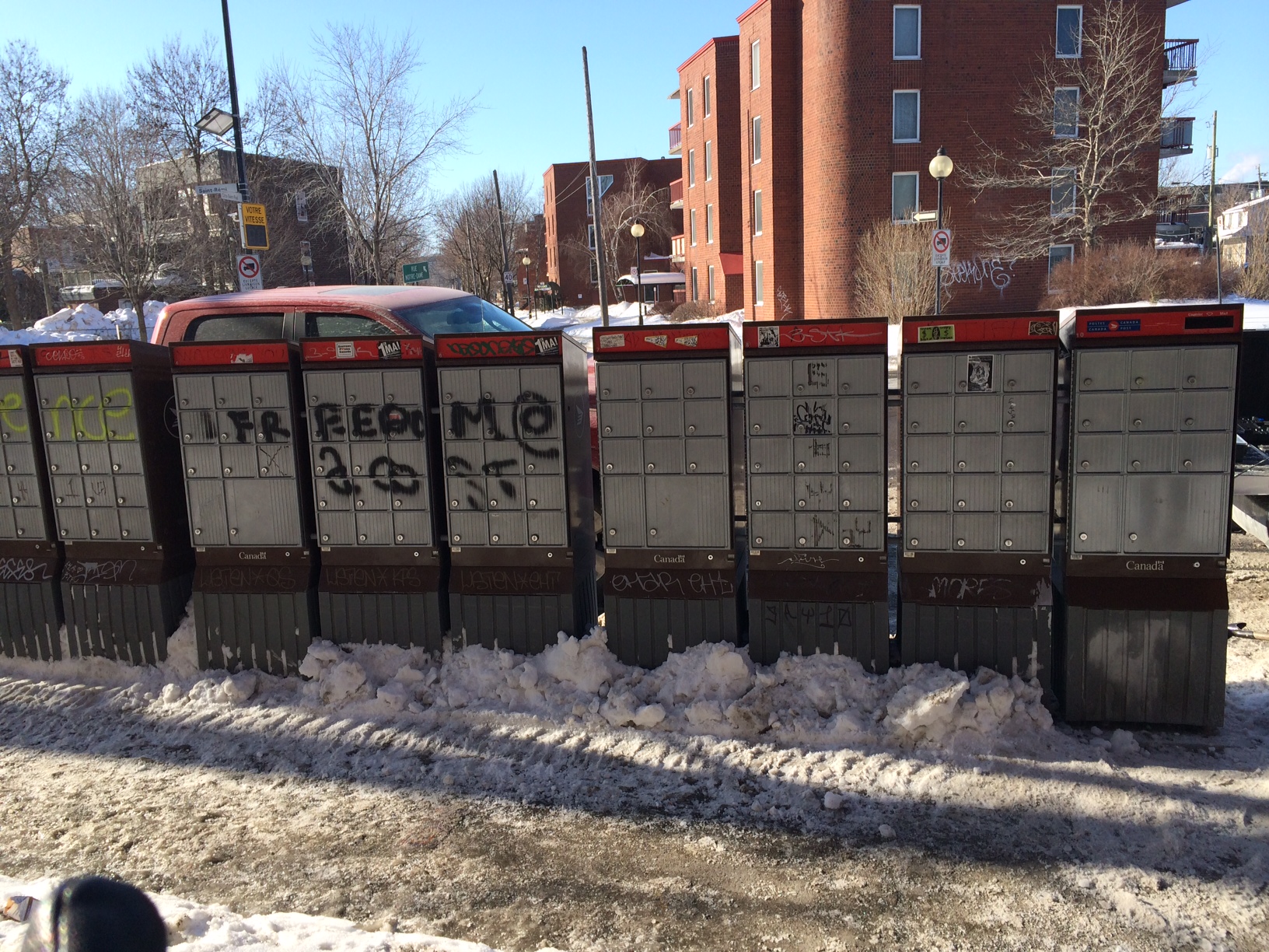 Les neuf premières boîtes ont été installées en janvier 2014 suite à une plainte logée en 2013 par deux facteurs pour une question de santé et de sécurité, explique-t-elle. Les employés ont subi des blessures en livrant le courrier aux 110 portes d’un ensemble résidentiel du secteur.
