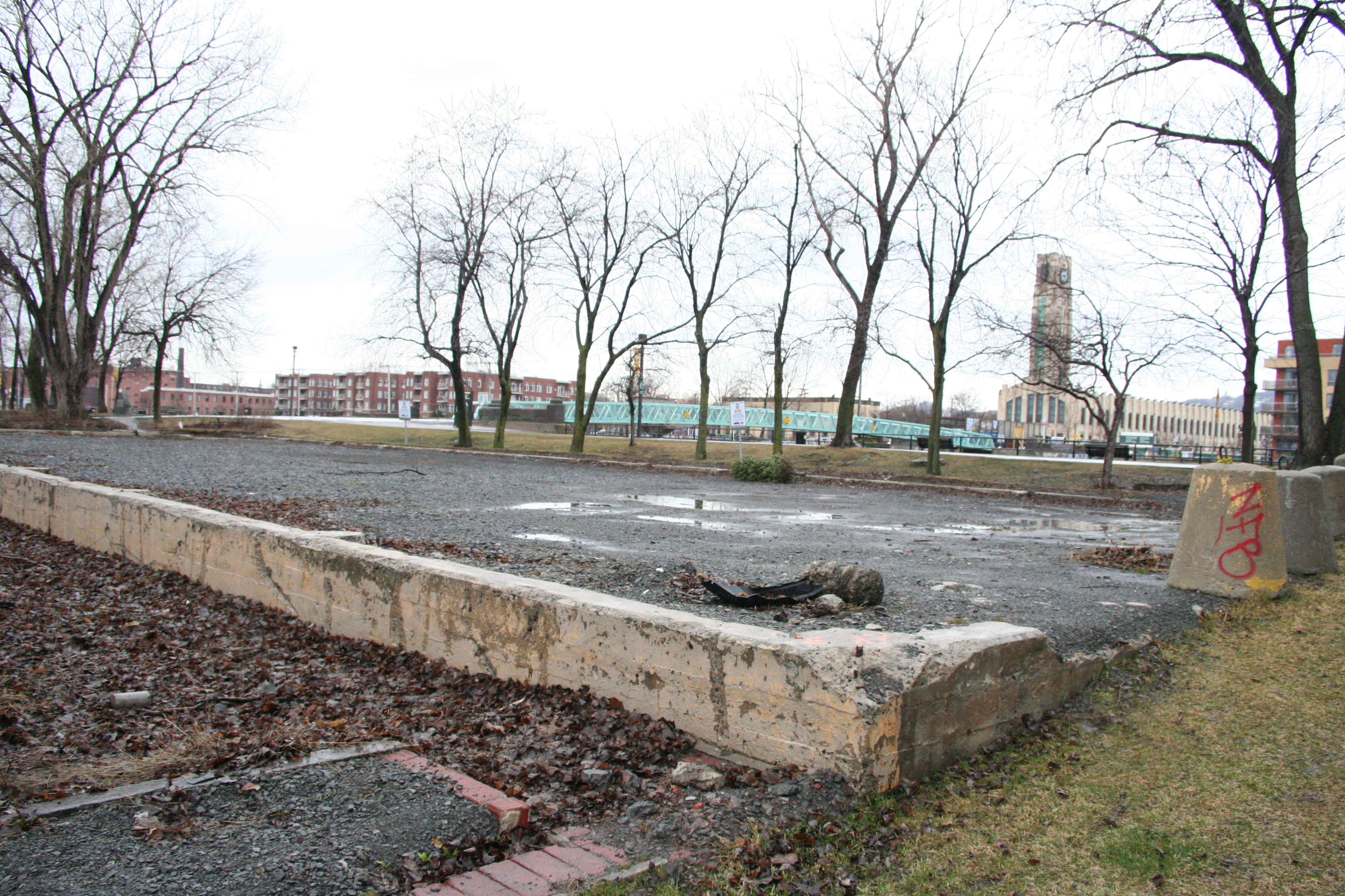 L’espace occupé par le parc porte encore les fondations du bâtiment de l’entreprise Les produits Seracon Inc., qui se trouvait jusqu’en 2009 sur ce terrain. Ces vestiges ne seront pas retirés du site. Une place publique en pavé de béton sera construite sur les lieux, tout comme un muret de pierres naturelles, pour les recouvrir.