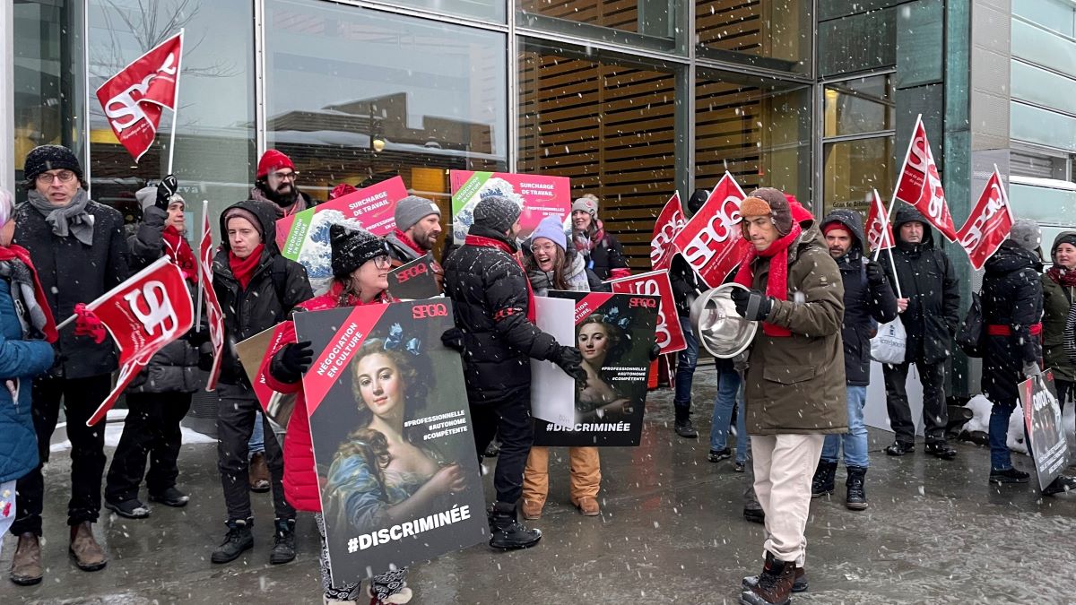 Les professionnels des institutions culturelles de l’État lancent un cri du cœur alors que la négociation d’une nouvelle convention collective traîne depuis mars 2020. Des membres du Syndicat de professionnelles et professionnels du gouvernement du Québec (SPGQ) ont manifesté lundi soir devant l’entrée de la Grande Bibliothèque, au centre-ville, pour revendiquer un rattrapage salarial.