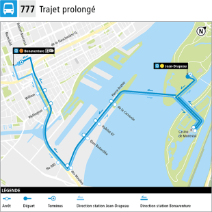 L’ancien trajet de la ligne 777 sera par ailleurs maintenu durant les périodes d’achalandage important. Cette ligne sera renommée 777X Ligne courte et reliera donc uniquement le casino et la station Jean-Drapeau.