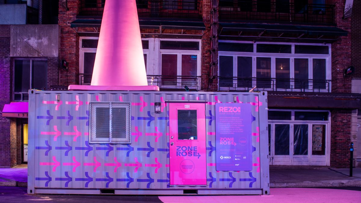 Dès le 7 août, l’organisme RÉZO met en place «une aire d’intervention, de discussion sans préjugés et de dépistage VIH/ITSS gratuit et sans rendez-vous» en plein cœur du Village. Appelé la «Zone Rose», ce conteneur muni d’un cône géant couleur Barbie est installé sur la rue Sainte-Catherine, entre Plessis et Panet.