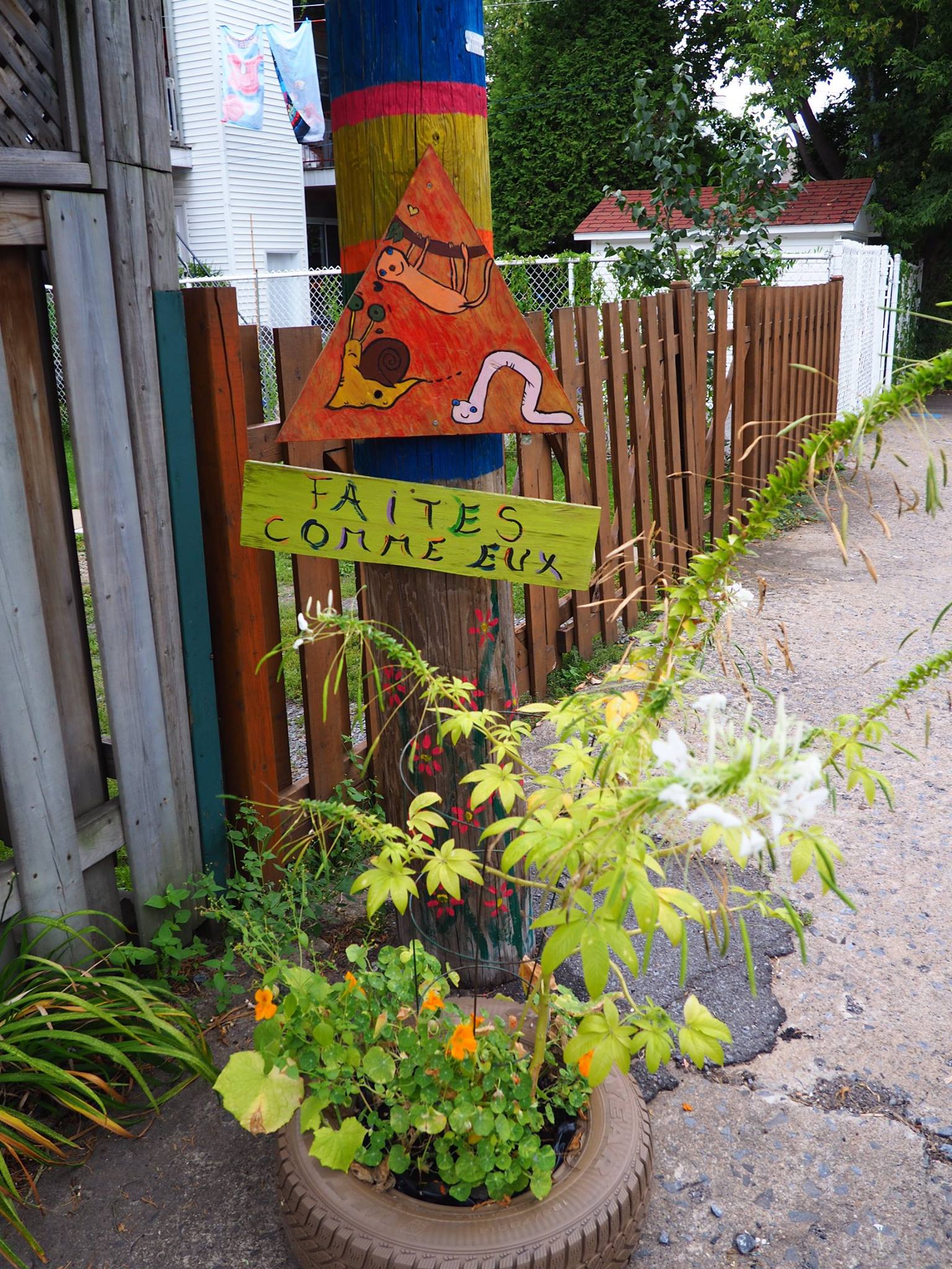 «On a fait des affiches avec des escargots, on utilise un ton un peu humoristique pour faire ralentir les automobilistes, mais ça ne fonctionne pas vraiment, explique-t-elle. On a aussi peint des petits pieds d’enfants au sol pour faire penser aux gens que c’est une ruelle très vivante.»