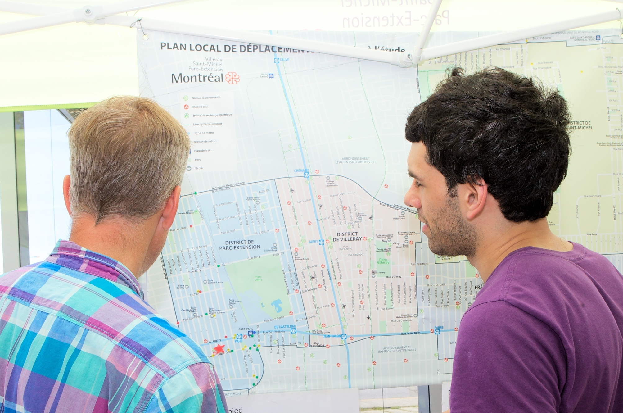 Une série de quatre kiosques de consultation a été organisée en septembre 2015 dans les différents districts de l’arrondissement, afin de discuter des enjeux de déplacement avec les citoyens. Une plateforme interactive offrant un sondage en ligne a aussi été mise en place.