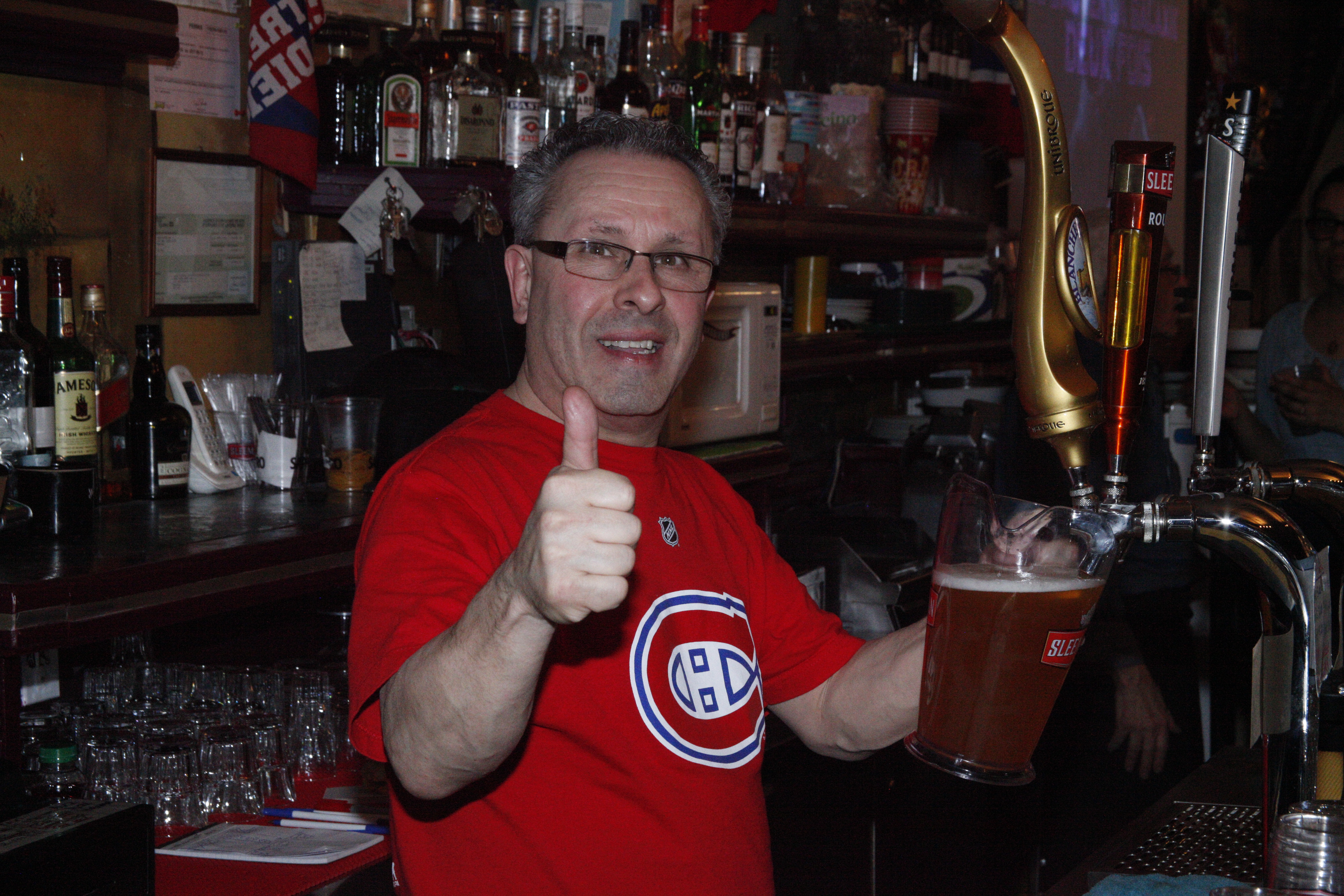 T-shirt rouge floqué du nom de Carey Price sur les épaules, Bruno Verrillo vit intensément chacune des rencontres disputées par les Habs depuis le début des séries de la LNH. Pourtant loin des patinoires sur lesquelles s’affrontent Montréal et New York, le propriétaire du Bruno Sport Bar connaît lui aussi des soirées actives derrière son comptoir. Il note les commandes, court derrière les fûts, remplit les verres, encaisse les clients et prend à peine le temps d’engloutir un panini en guise de ravitaillement.