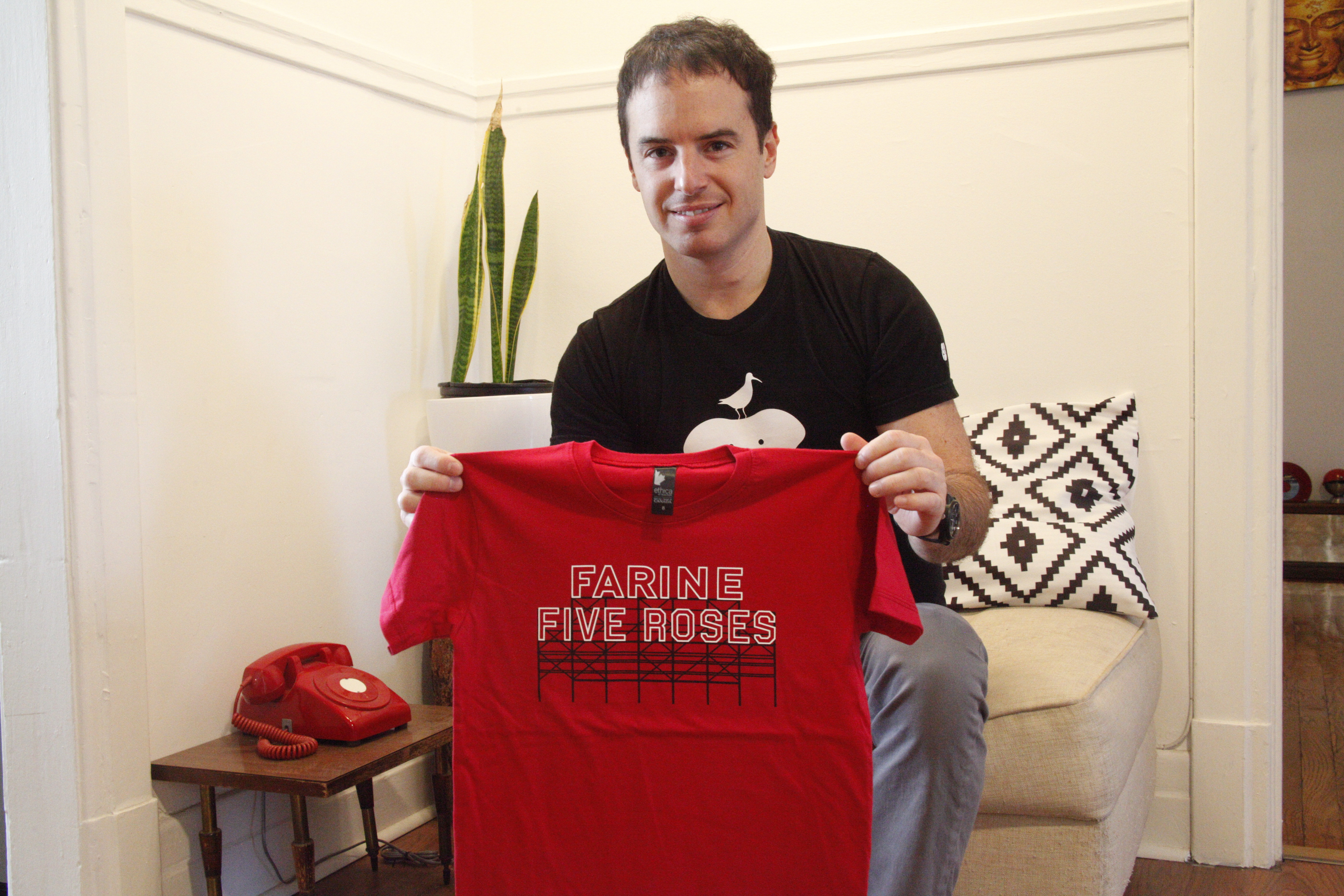 C’est dans son appartement de la rue Berri que Pierre-Luc Bouthillier imagine les images, mots et symboles qu’il imprime ensuite sur ses vêtements. Graphiste de formation, ce Montréalais fier de sa ville a eu l’idée de lancer sa marque en 2007 en visitant une boutique qui mettait en avant les designers locaux sur la Plaza Saint-Hubert.