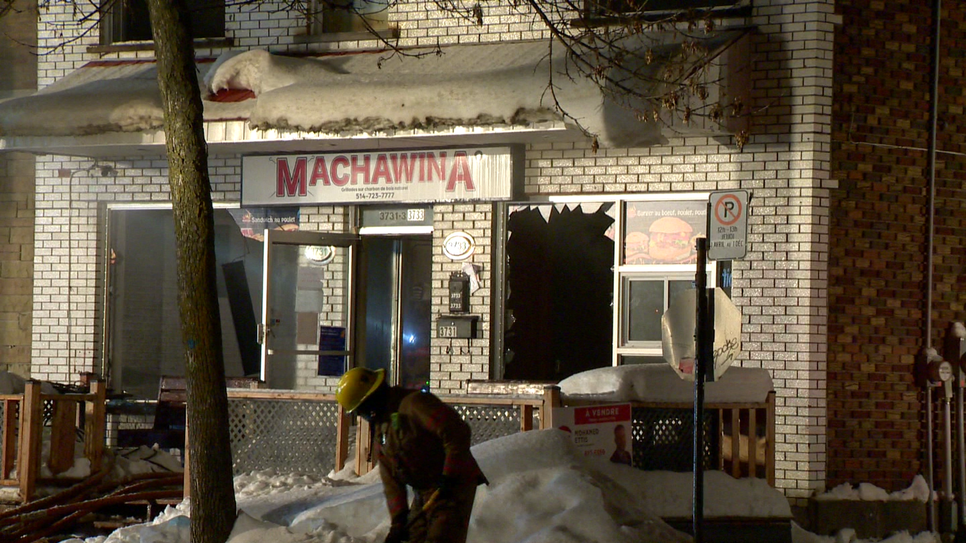 Le restaurant Grillades Machawina de l’arrondissement Villeray–Saint-Michel–Parc-Extension a été la proie des flammes en fin de soirée, dimanche.