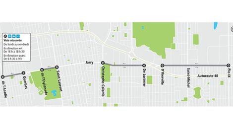 Dès le 23 janvier, les autobus, taxis et vélos pourront rouler dans une nouvelle voie qui leur sera réservée sur la rue Jarry, dans l’arrondissement de Villeray–Saint-Michel–Parc-Extension.
