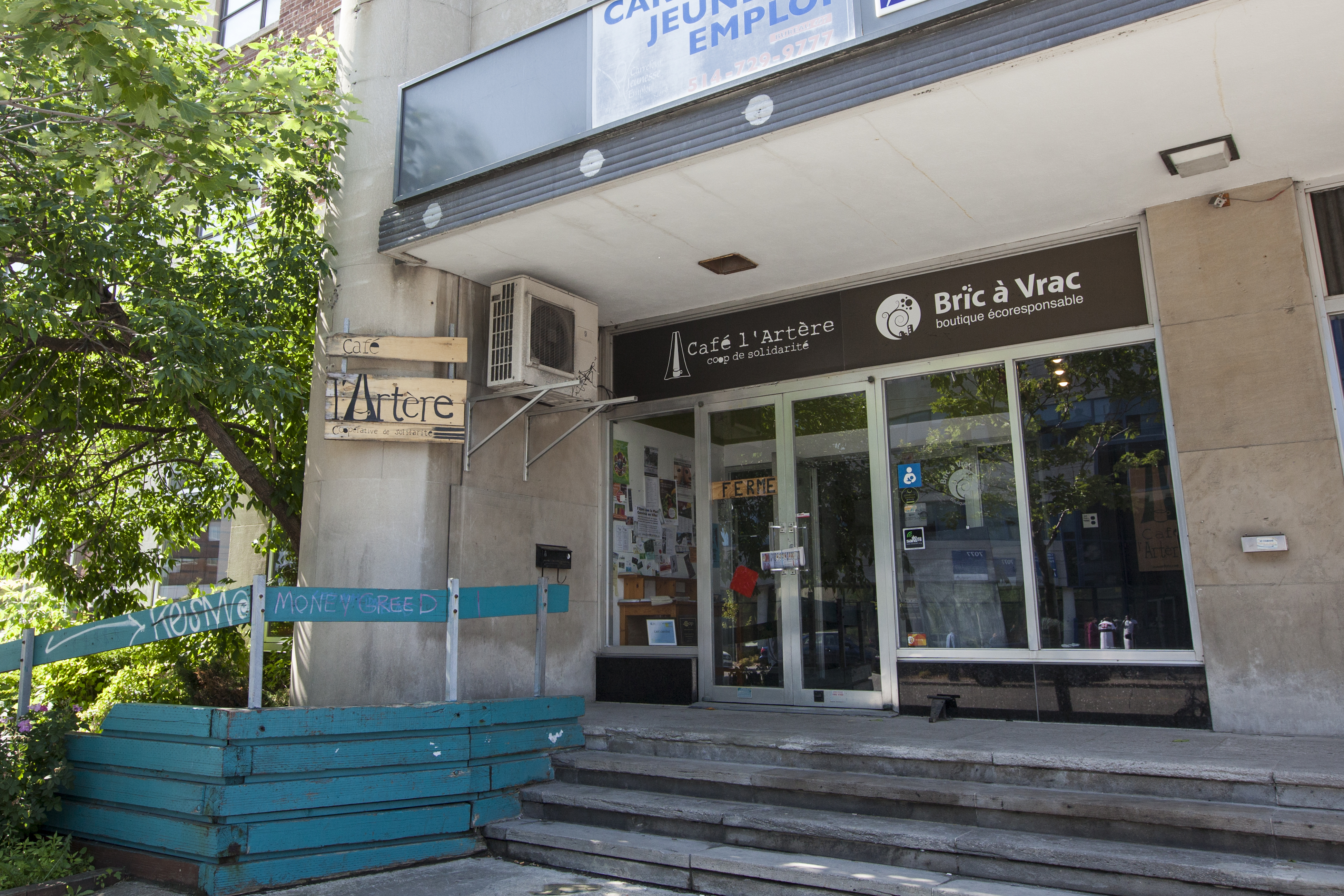 Le Café l’Artère est une coopérative de solidarité vendant des repas et des rafraîchissements. Il possède également une mission en tant que salle de diffusion afin de favoriser l’accessibilité à la culture et à l’expression.