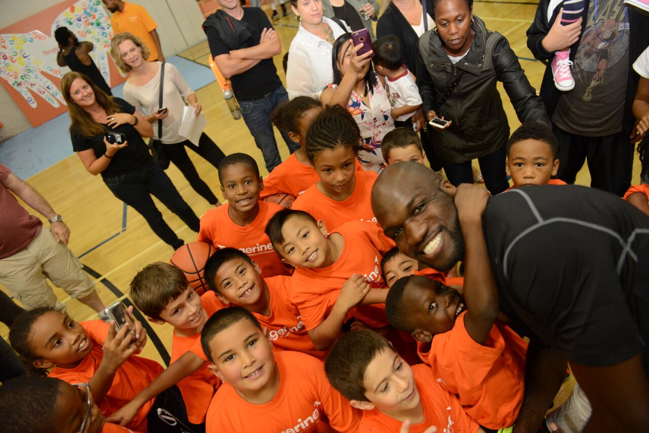 Près de 200 jeunes âgés de 9 à 13 ans ont rencontré le joueur professionnel de basketball de la NBA, Joel Anthony, le 13 septembre dernier, à l’école Lucien-Pagé.