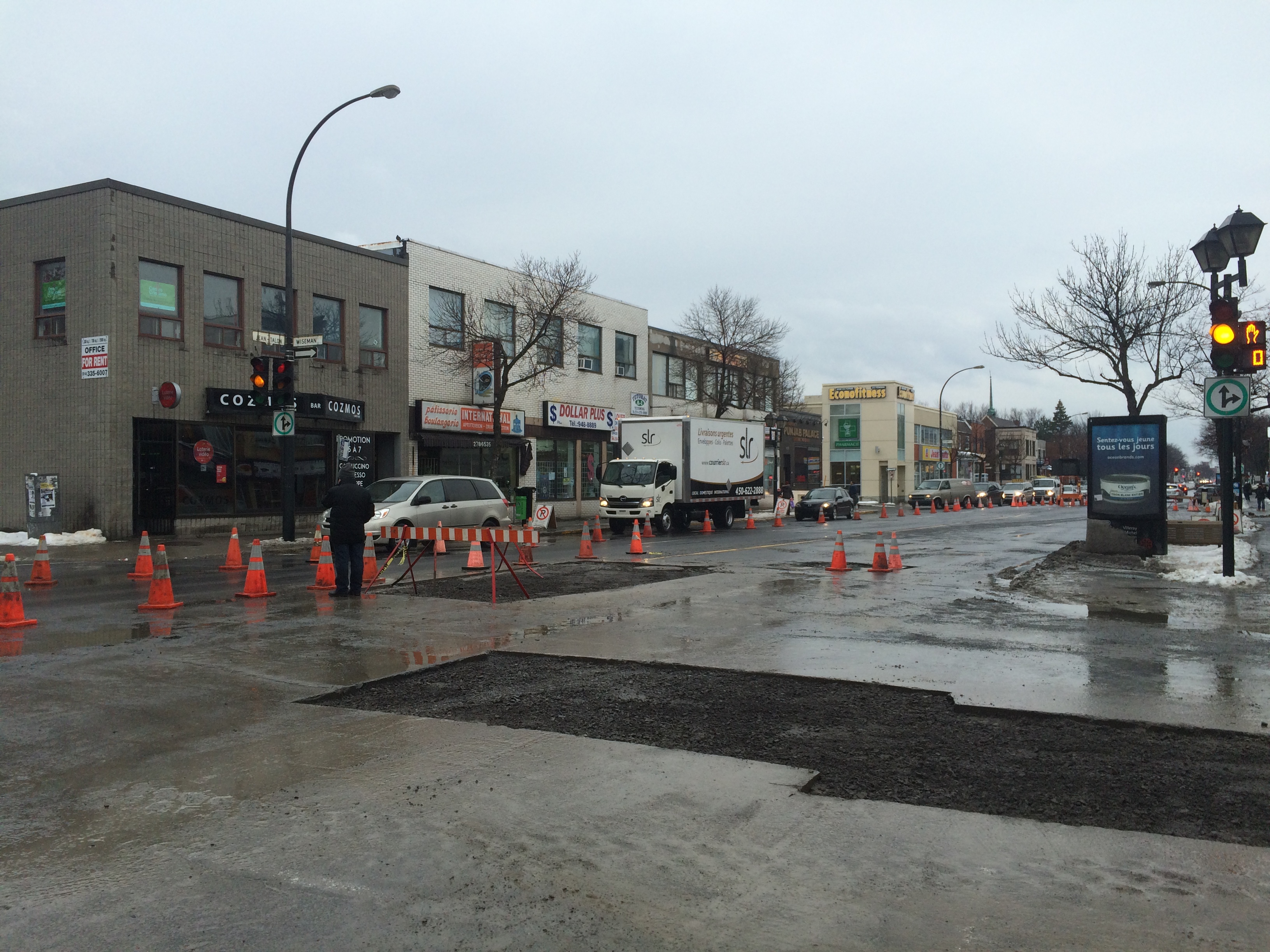 La rue Jean-Talon est partiellement fermée à la hauteur de Wiseman, près du boulevard de l’Acadie, en raison de deux bris de conduite d’aqueduc survenus lundi dans Parc-Extension.