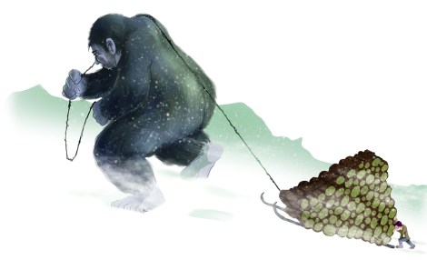 Comme tu peux le voir, la plupart du temps, les monstres sont malfaisants, ils ont de mauvaises intentions. Mais il existe aussi de gentils monstres. C’est le cas de Mistapéo, un géant qui se trouve au cœur de plusieurs récits innus. Mistapéo est une créature immense et il est couvert de fourrure. Pas rassurant… Pourtant, il aime les humains et il lui arrive même de leur venir en aide.