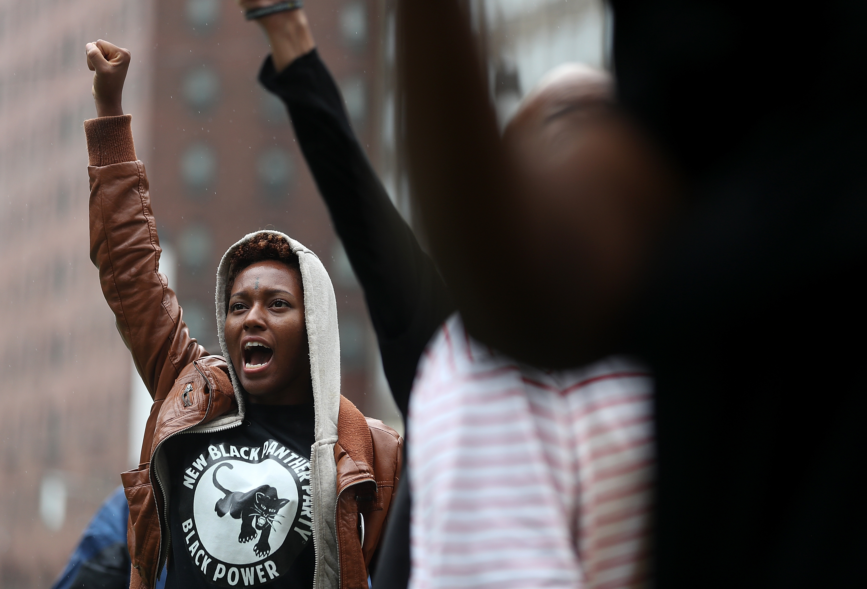 Le New Black Panther Party a manifesté en amont de la convention républicaine, à Cleveland, pour protester contre le racisme et exiger un traitement égal de la minorité afro-américaine. /Getty