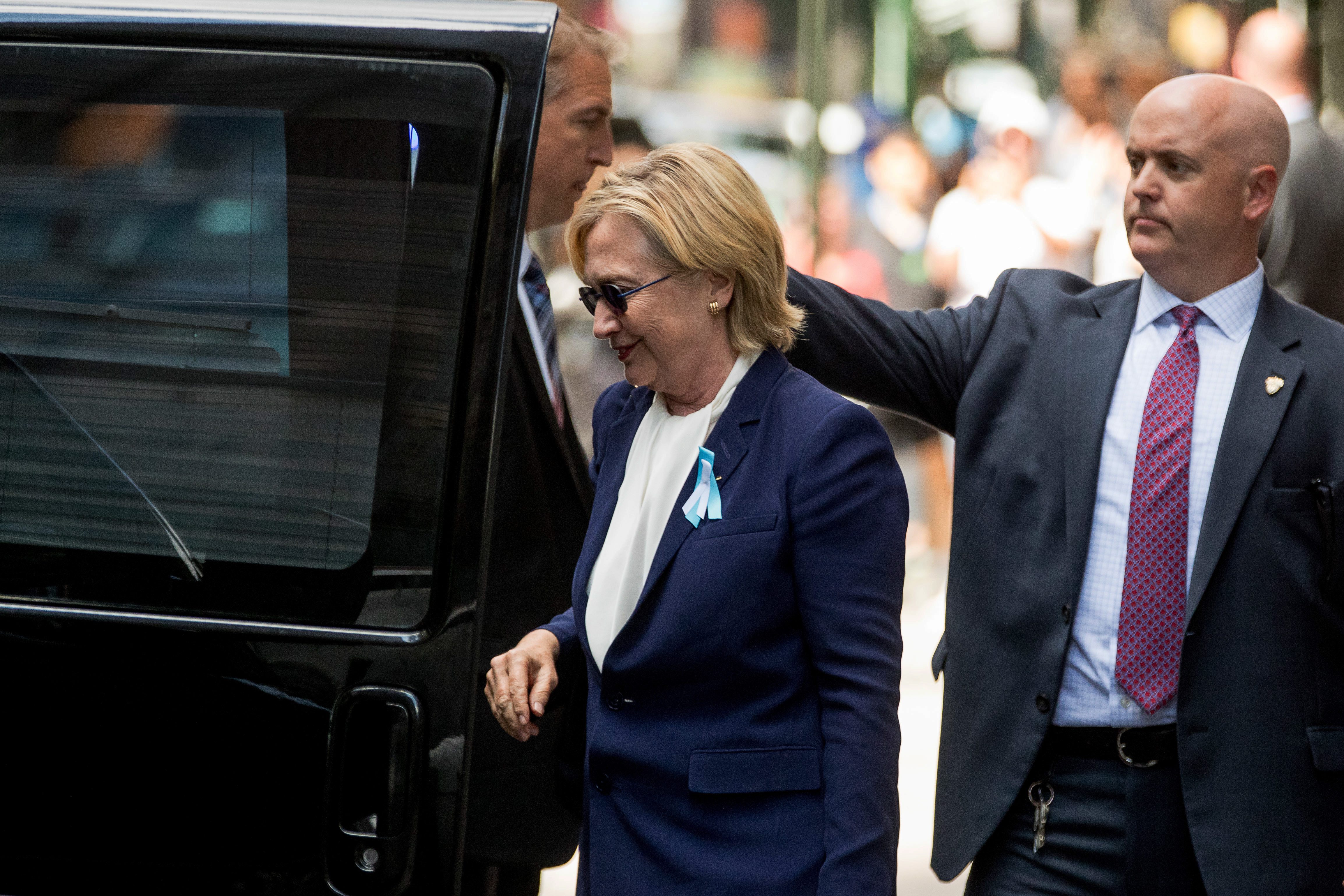 Lors des commémorations du 11 septembre à New York le week-end dernier, Hillary Clinton a dû s’excuser rapidement parce qu’elle ne se sentait pas bien. Sur une vidéo qui a beaucoup circulé sur le web, on la voit perdre pied et se tenir sur des gardes de sécurité.