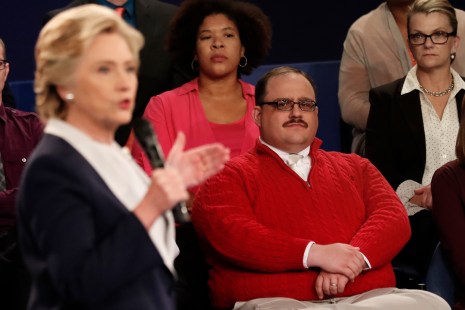 L’électeur indécis moustachu originaire de l’Illinois, vêtu d’un cardigan rouge et d’un pantalon kaki, est devenu une réelle vedette instantanée sur les réseaux sociaux, dimanche soir, lorsqu’il a posé une question sur l’énergie à l’assemblée publique.