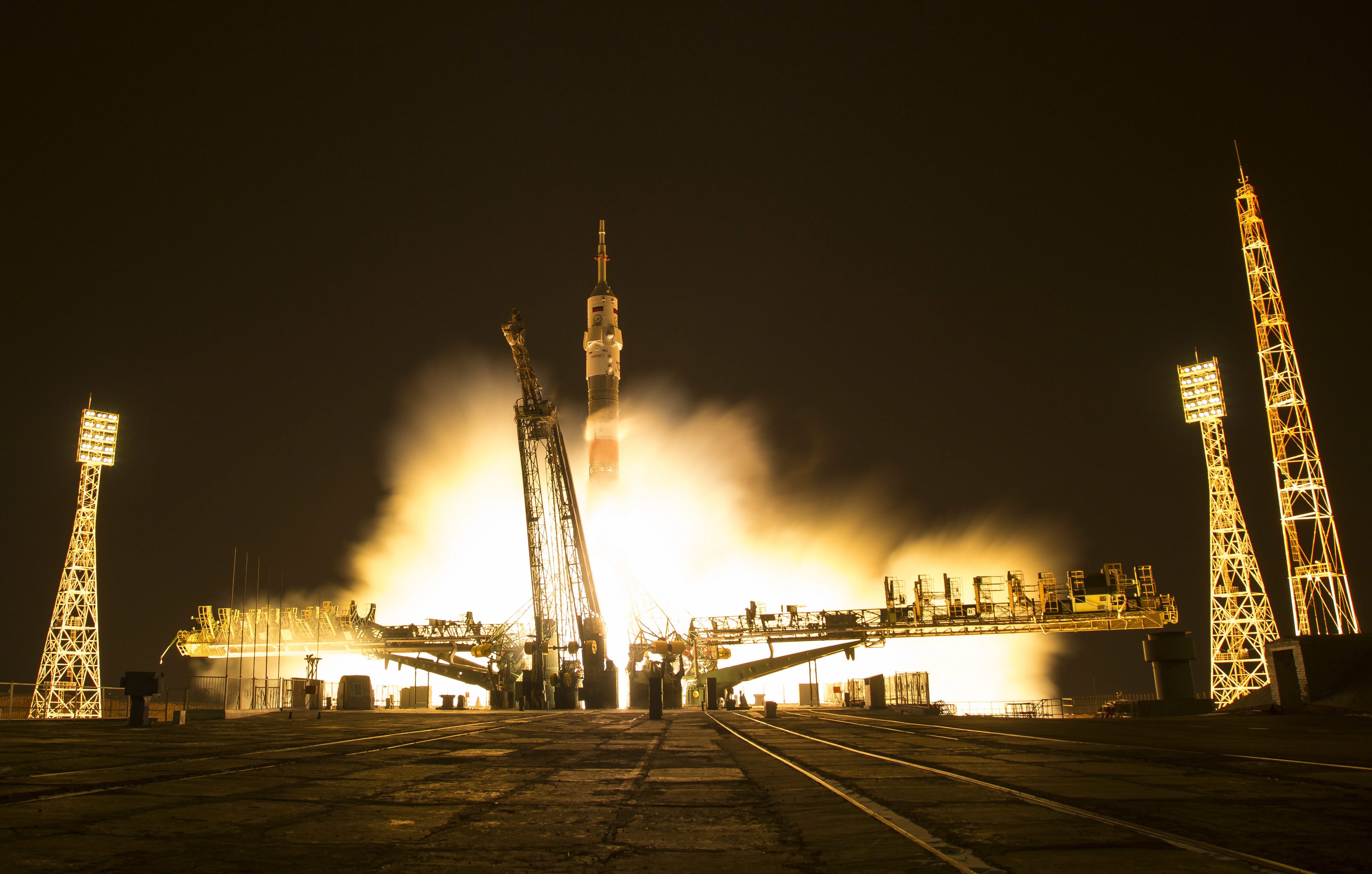 Une Américaine, un Russe et un Français ont décollé jeudi depuis le Kazakhstan en direction de la Station spatiale internationale (SSI).