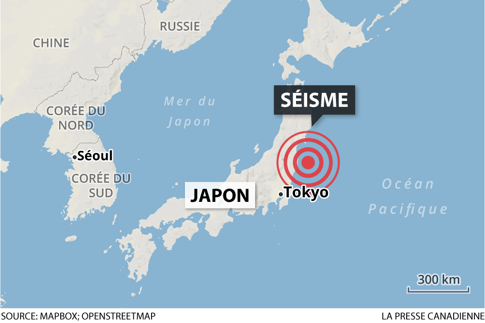 Un tremblement de terre d’une magnitude de 7,3 sur l’échelle de Richter a secoué le Japon, mardi matin (environ 16h heure de Montréal).