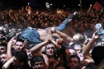 A fan who was dancing in the mosh pit is lifted to remove him from the area, toward security, during Argentine singer Indio Solari's show in Olavarria, Argentina, Saturday, March 11, 2017. Officials say two people died in a crush during Solari's massive rock concert. (AP Photo/Hernan Leonardi) Photo: The Associated Press