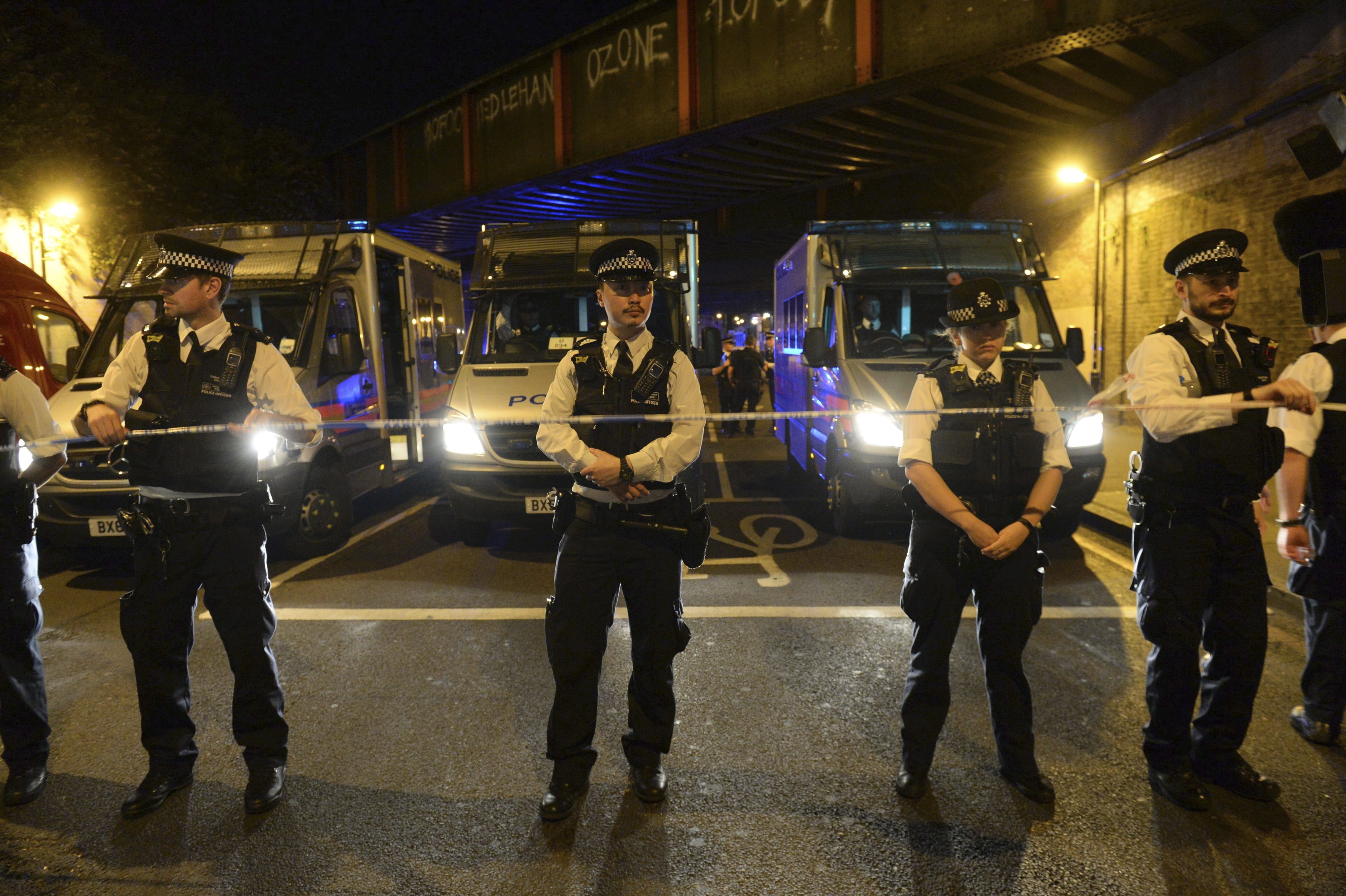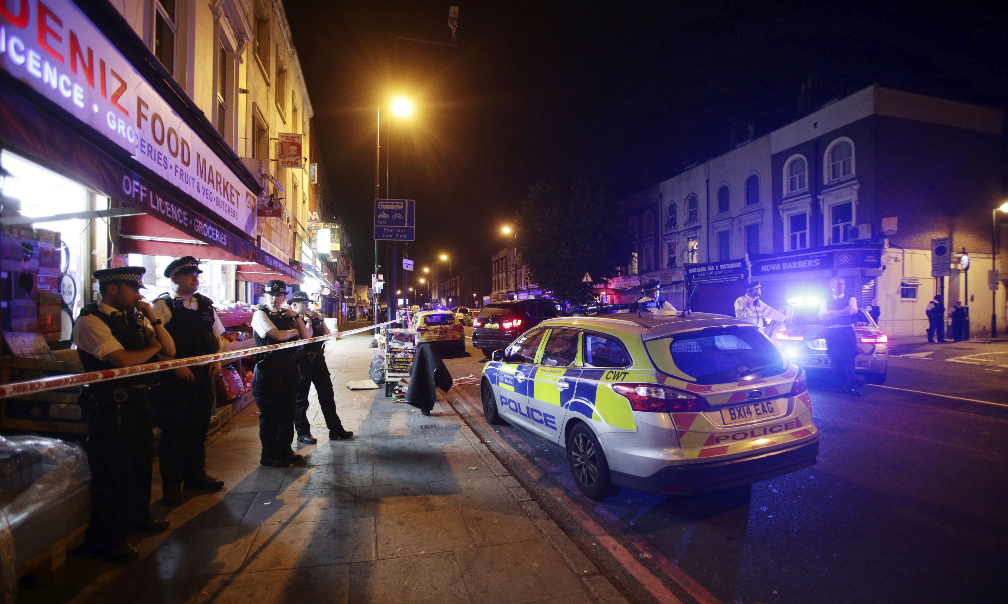 Les agents ont érigé un périmètre de sécurité autour de Finsbury Park Station, près du parc.