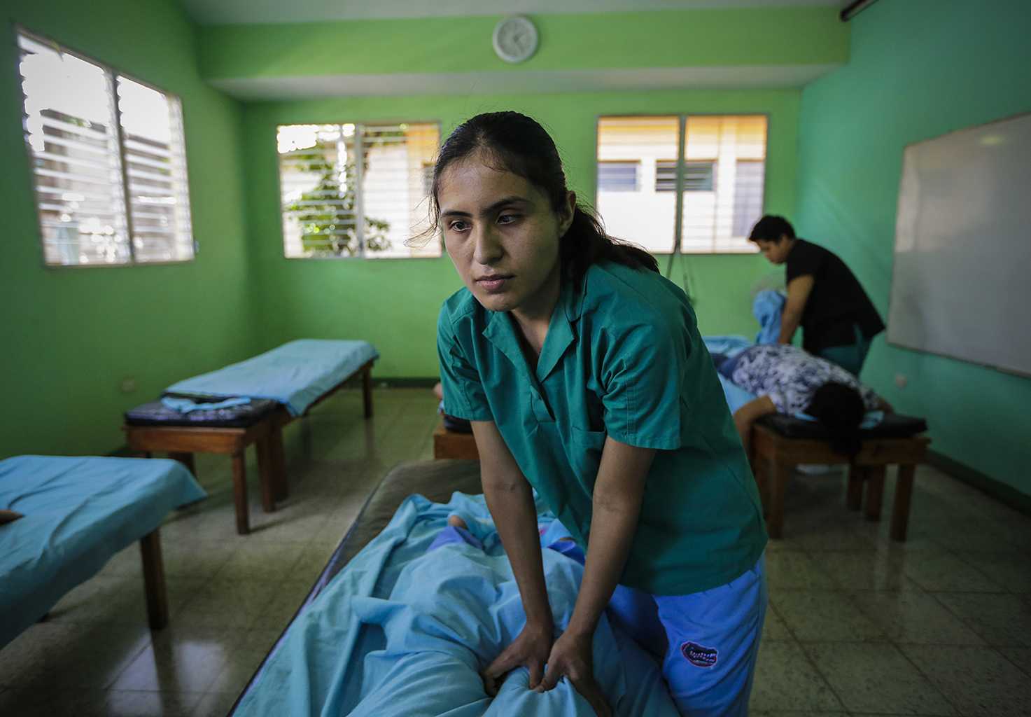 Dans une salle aux murs verts où résonne une musique douce, Jason Pérez, devenu aveugle dans un accident, se forme au massage shiatsu, thérapie traditionnelle japonaise dont les cours sont dispensés gratuitement au Nicaragua pour les non-voyants.