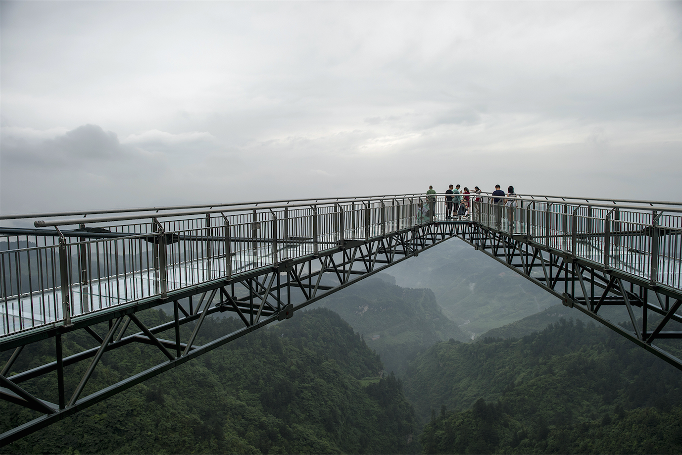 L’ouvrage de 69,6 m de long, situé dans la municipalité de Chongqing, est entré dans le livre Guinness des records au titre de plus longue passerelle du monde en porte-à-faux (sans rien qui la soutienne par en-dessous). Seuls des câbles la retiennent.