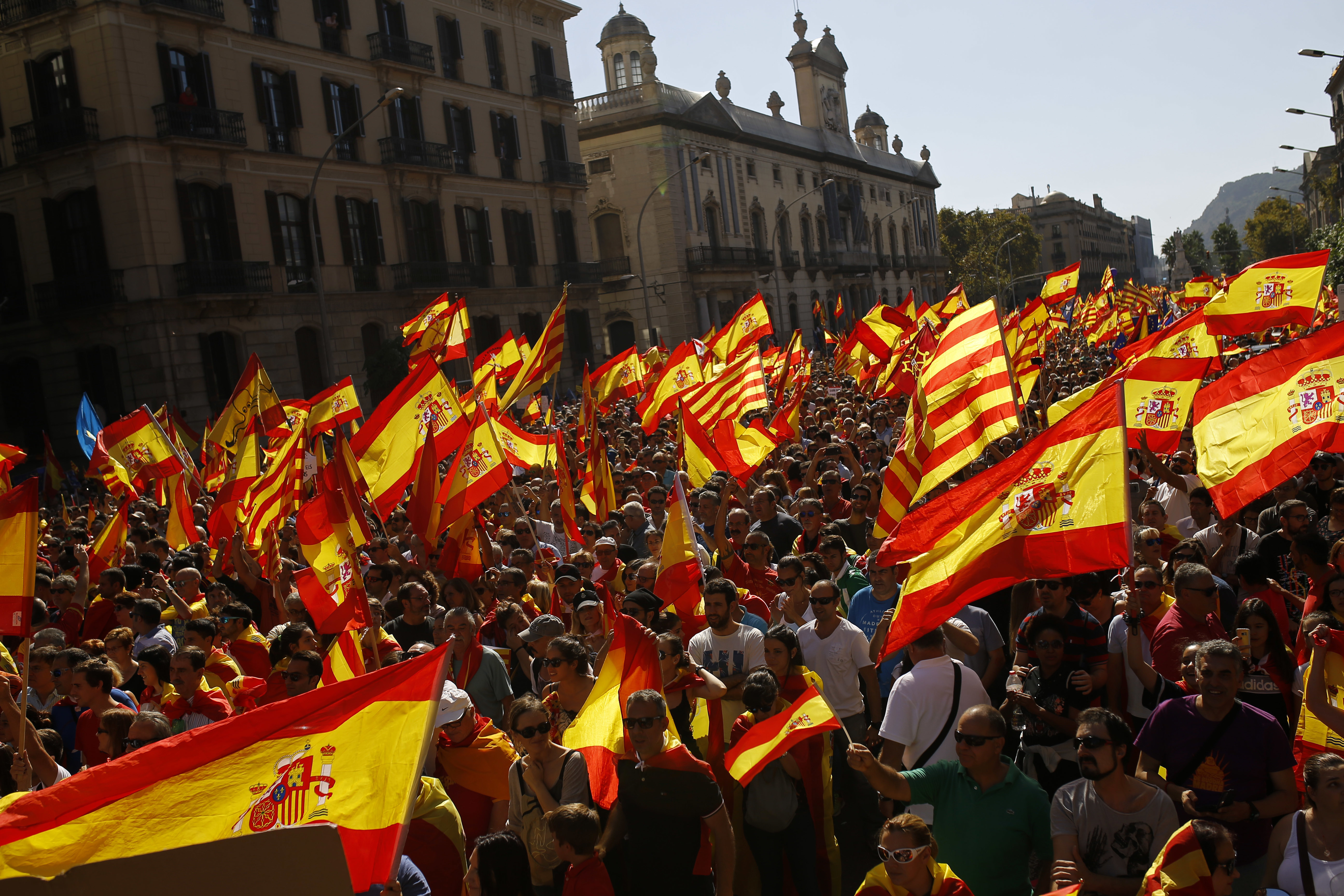 De nombreux marcheurs ont brandi des drapeaux aux couleurs de l’Espagne, de la Catalogne et de l’Union européenne. En plus de réclamer l’arrestation du président catalan Carles Puigdemont, ils ont scandé des slogans comme: «Retrouvons notre bon sens!» et «Détrompez-vous, la Catalogne c’est l’Espagne».
