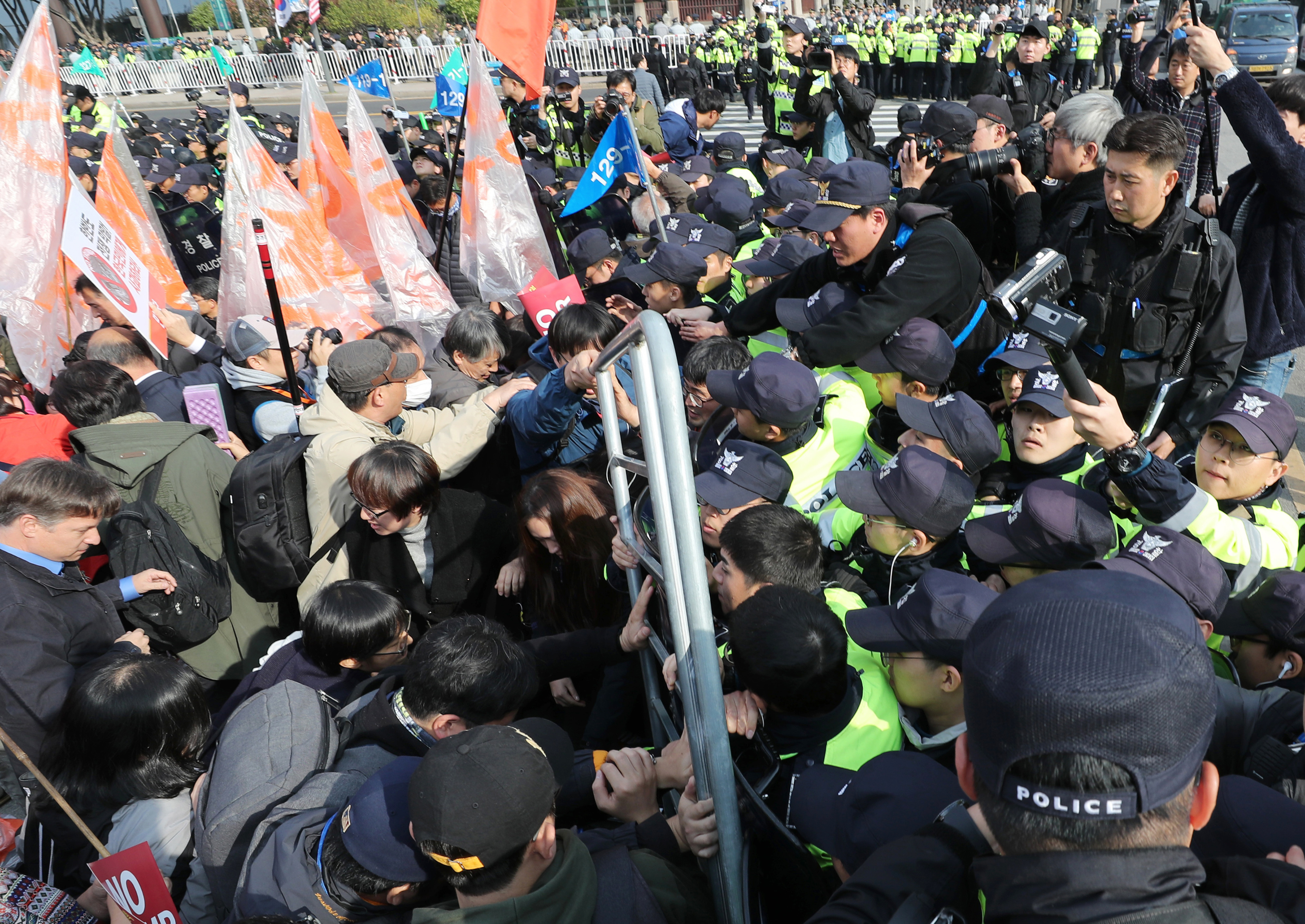 Plus de 15 000 policiers devaient être déployés pour la visite de deux jours du président américain, selon l’Agence de la police nationale en Corée du Sud.